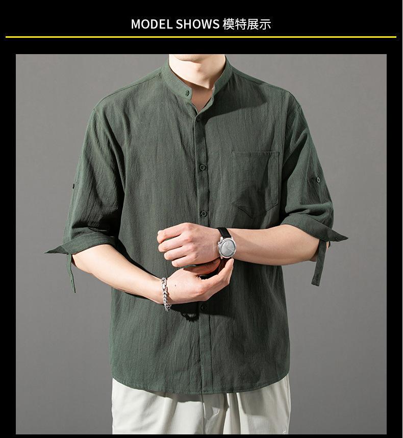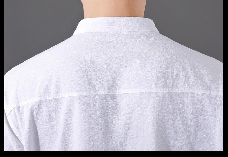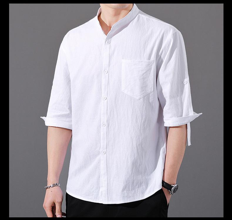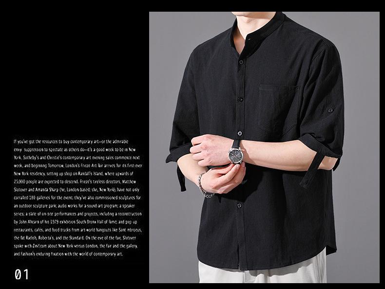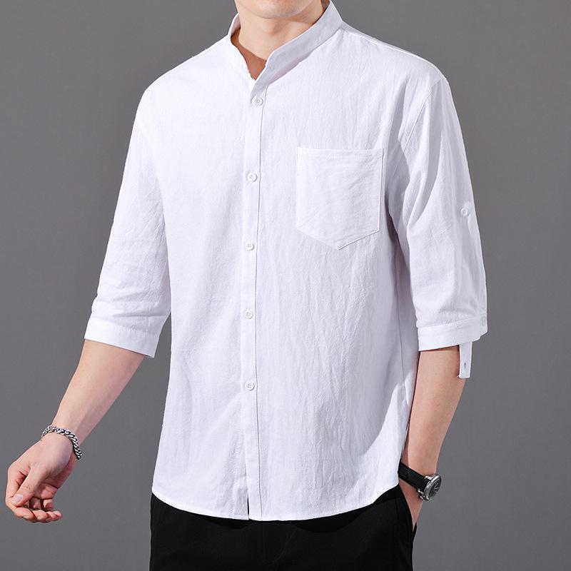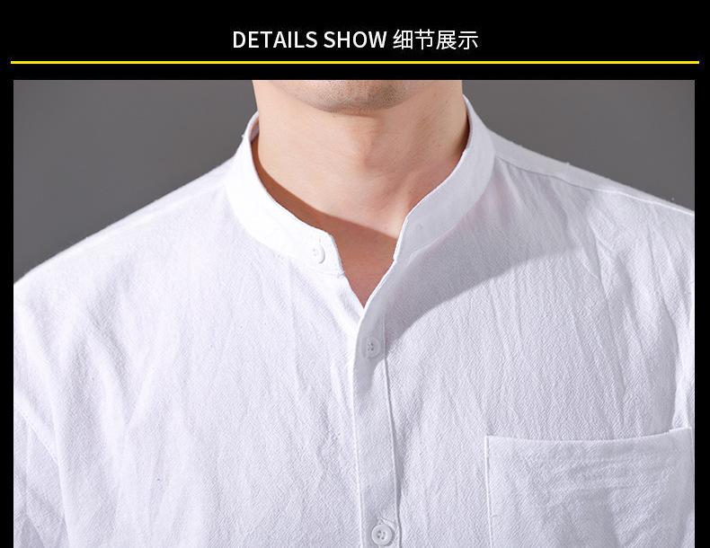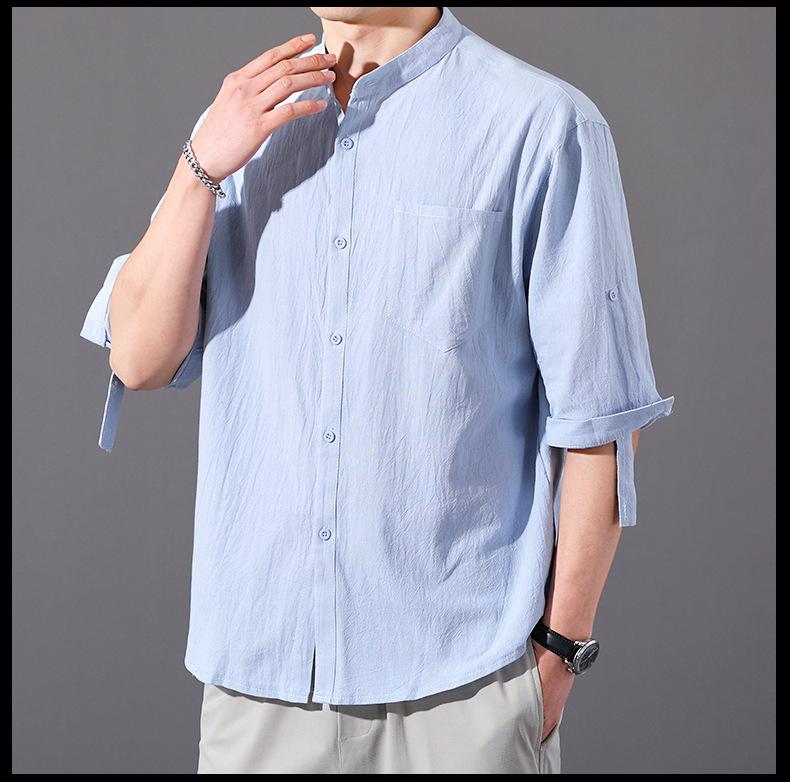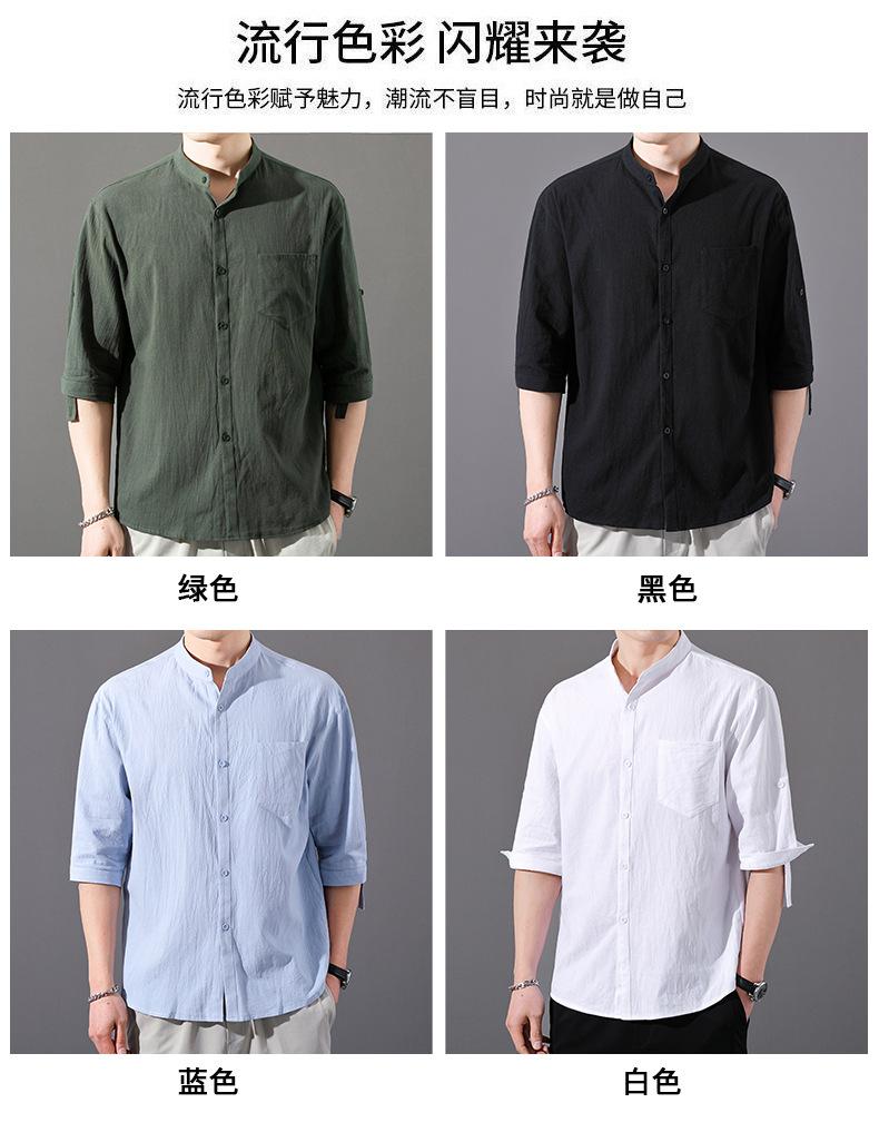 Alta qualidade de algodão linho cropped manga camisa masculina verão coreano estilo vertical colarinho homens bonito camisa de manga curta camisa da moda