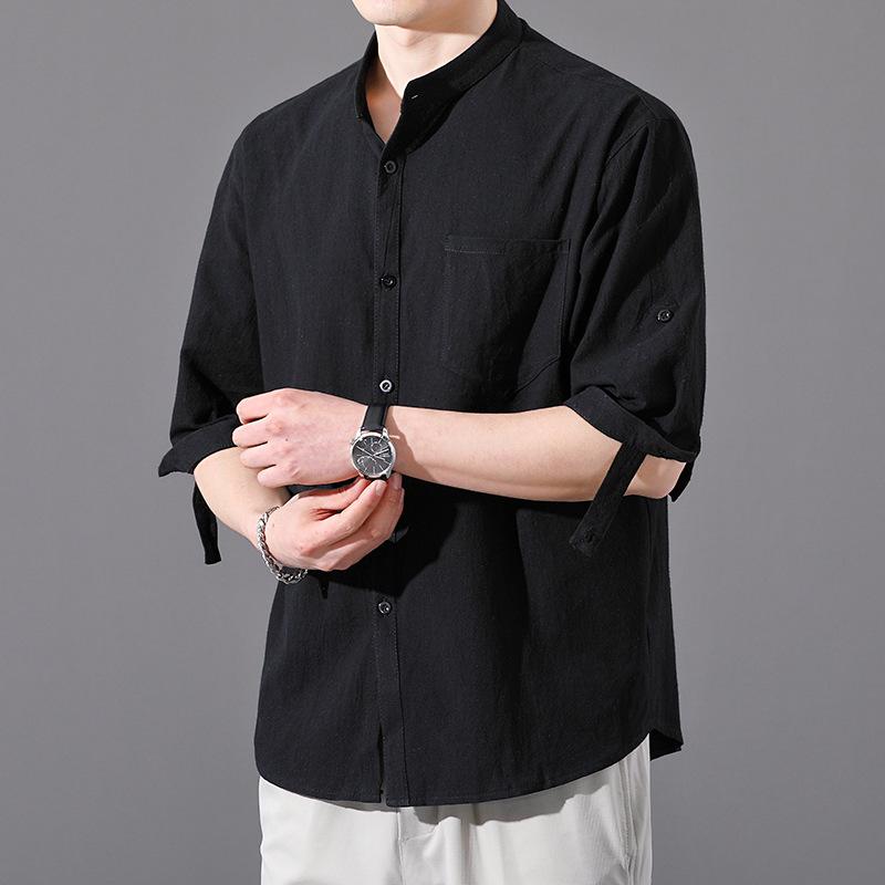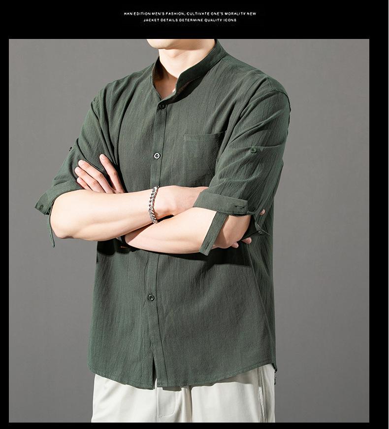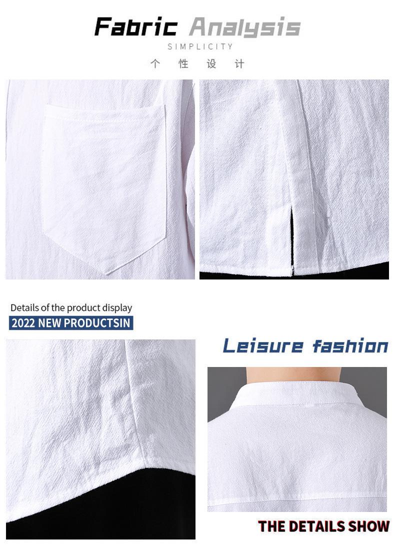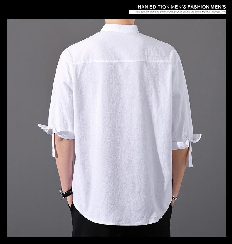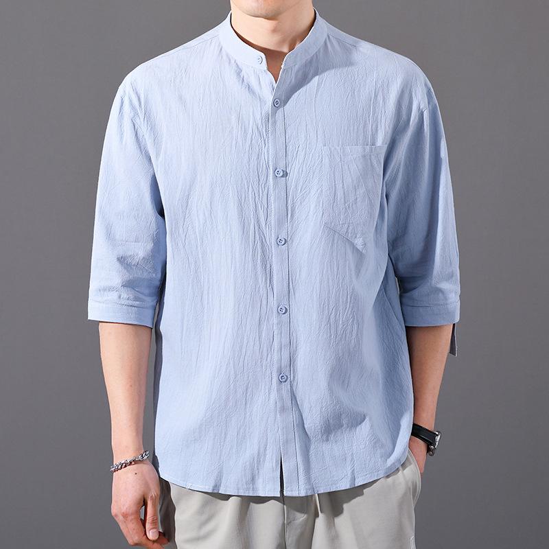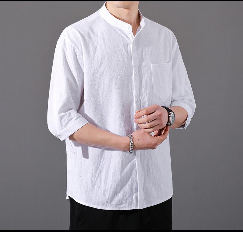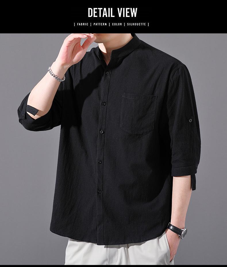 Alta qualidade de algodão linho cropped manga camisa masculina verão coreano estilo vertical colarinho homens bonito camisa de manga curta camisa da moda