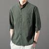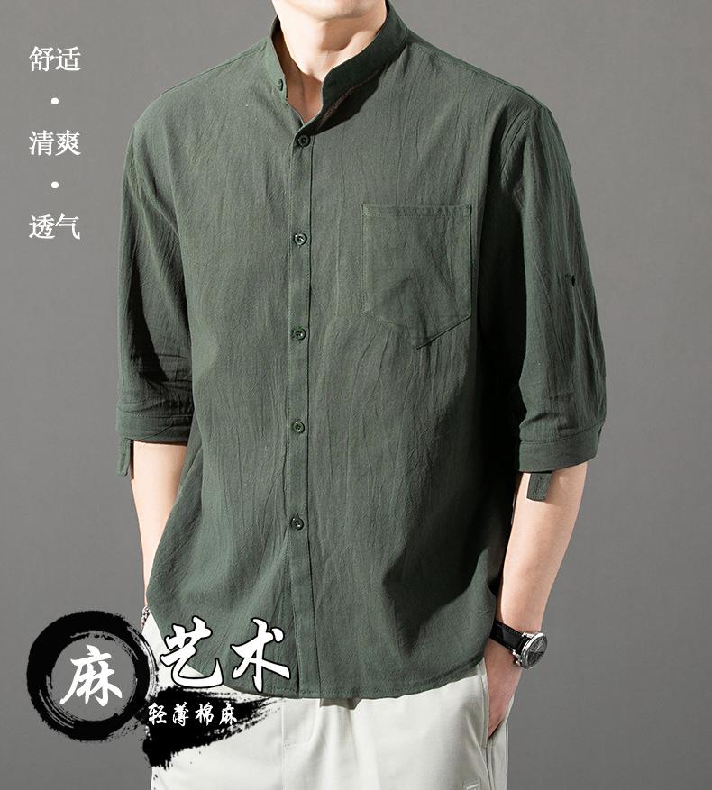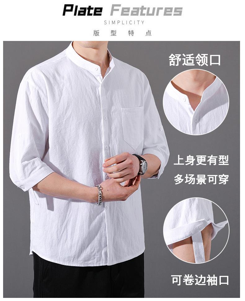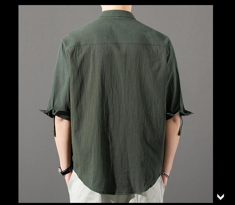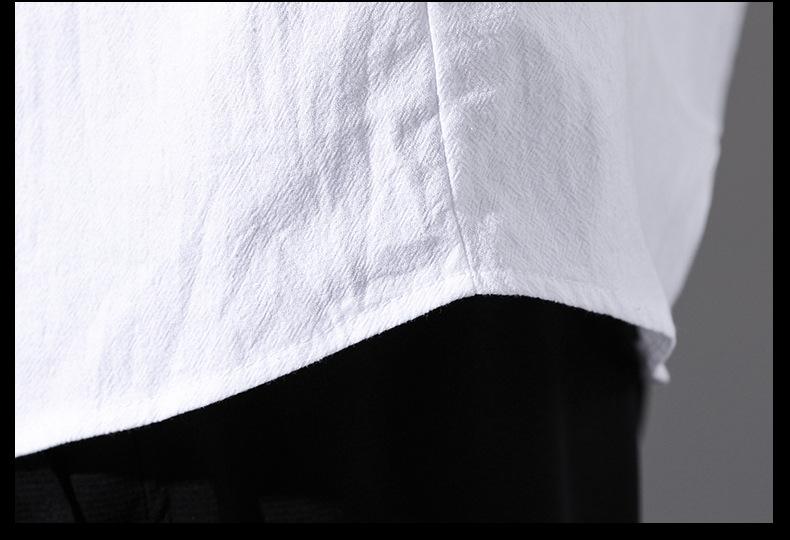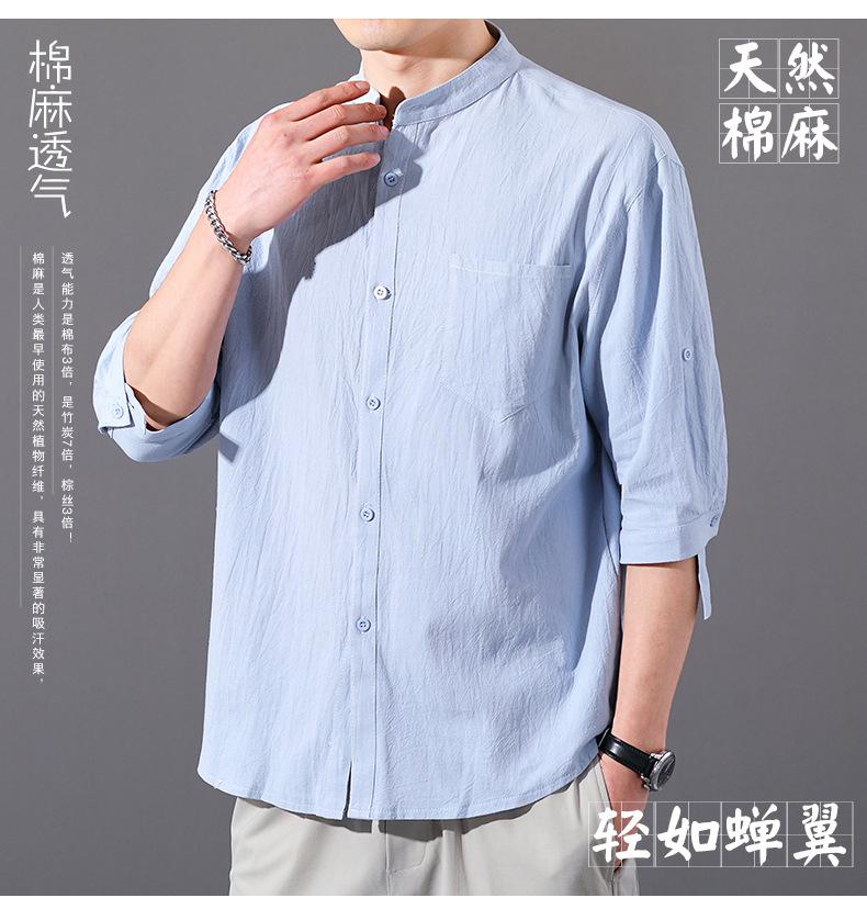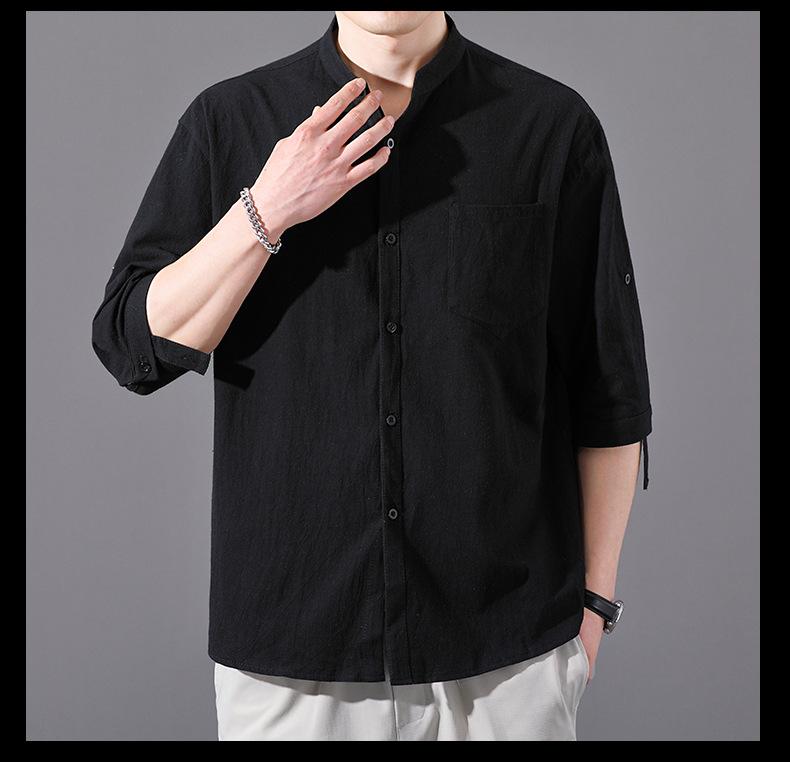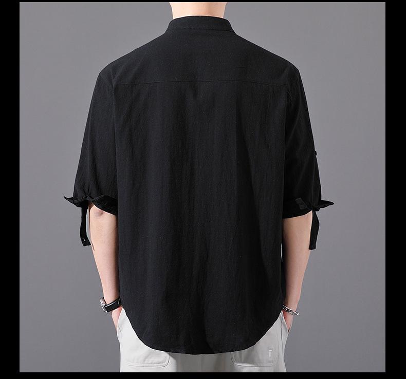 Alta qualidade de algodão linho cropped manga camisa masculina verão coreano estilo vertical colarinho homens bonito camisa de manga curta camisa da moda