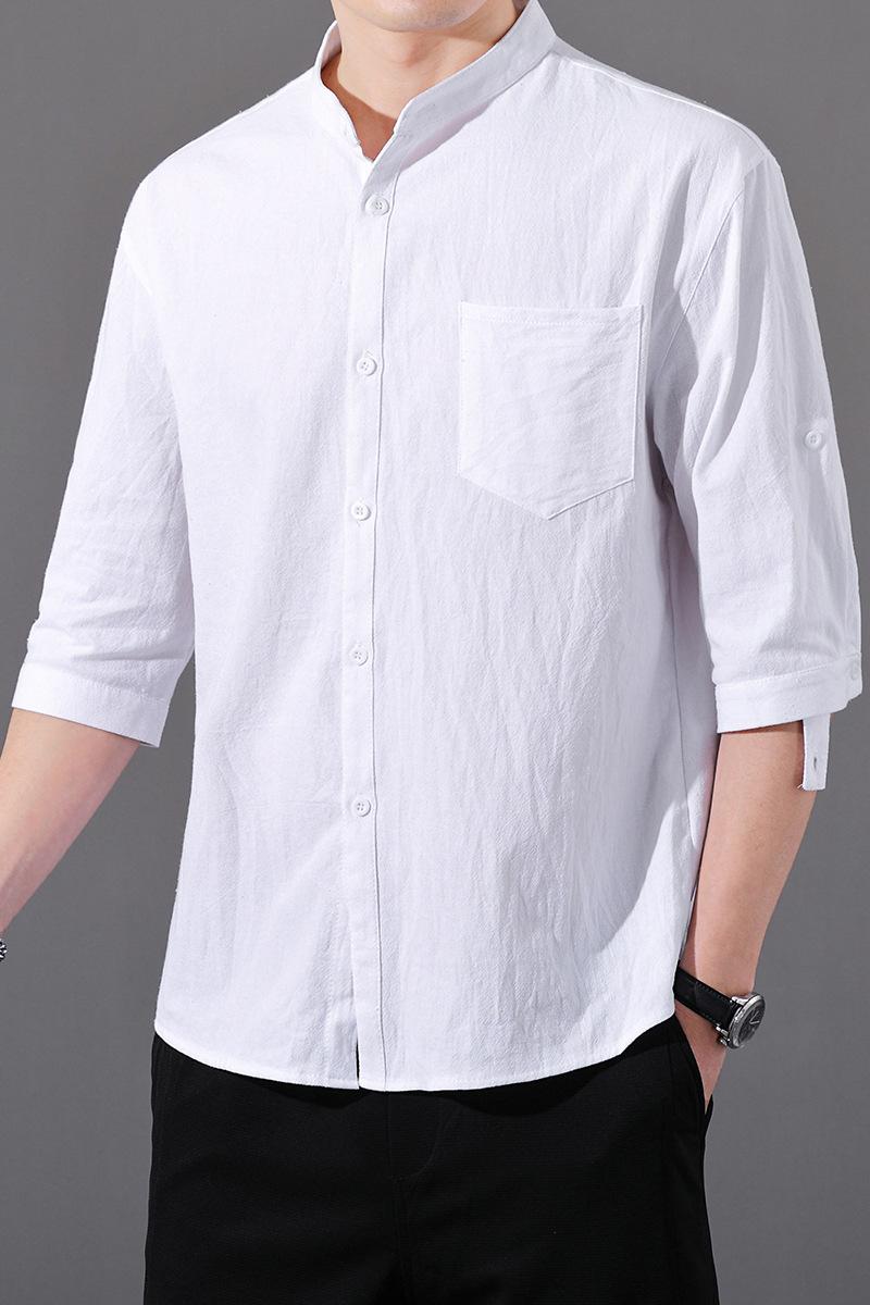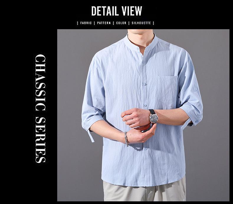 Compre Alta qualidade de algodão linho cropped manga camisa masculina verão coreano estilo vertical colarinho homens bonito camisa de manga curta camisa da moda no atacado no Joom.pro