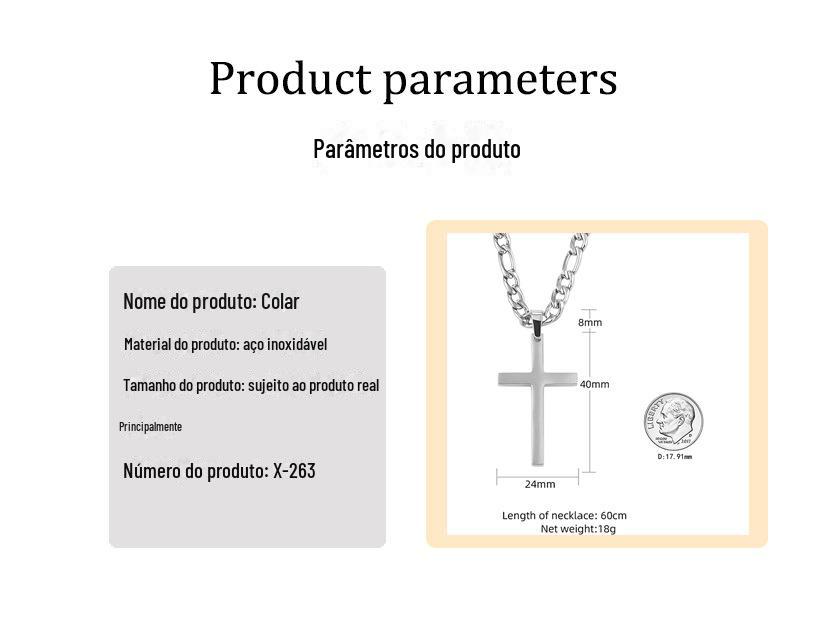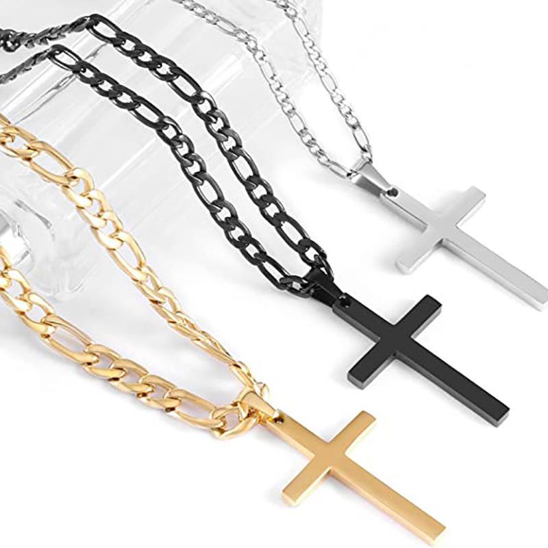 Europeu e americano cross-border nova jóia aço inoxidável cubano corrente cruz pingente colar masculino simples moda jóias