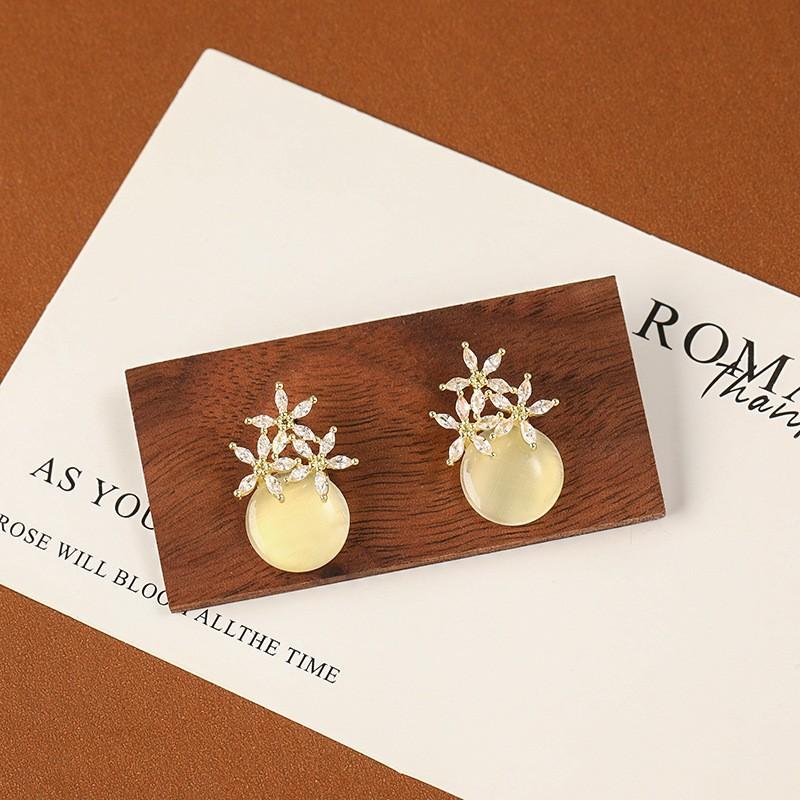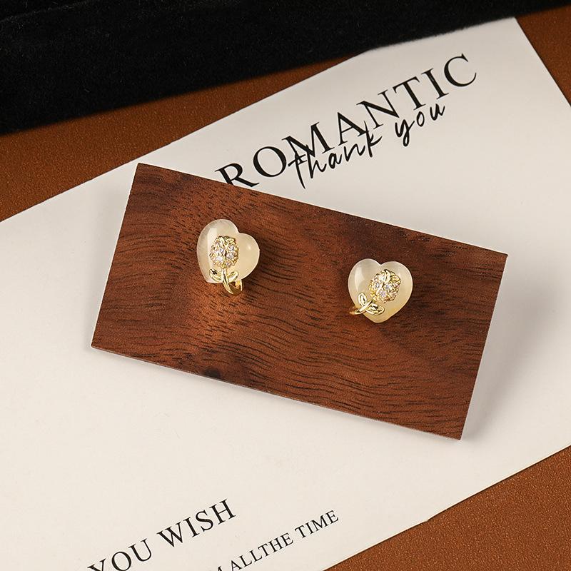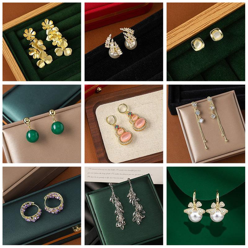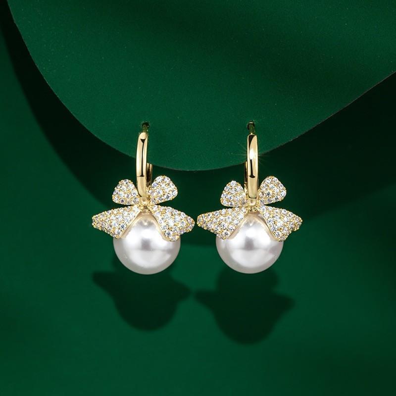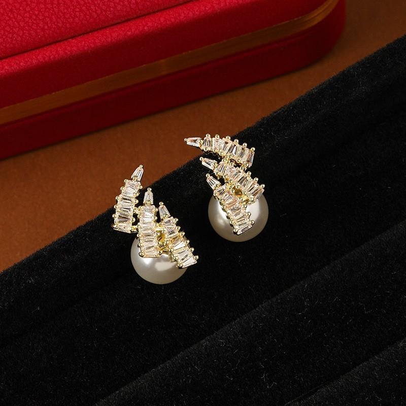 Estilo Coreano Estilo Avançado Luz Luxo Brincos Elegantes Mulheres Requintado Micro-incrustado Brincos Pérola Amor Flor Geométrico Brincos Distintivos