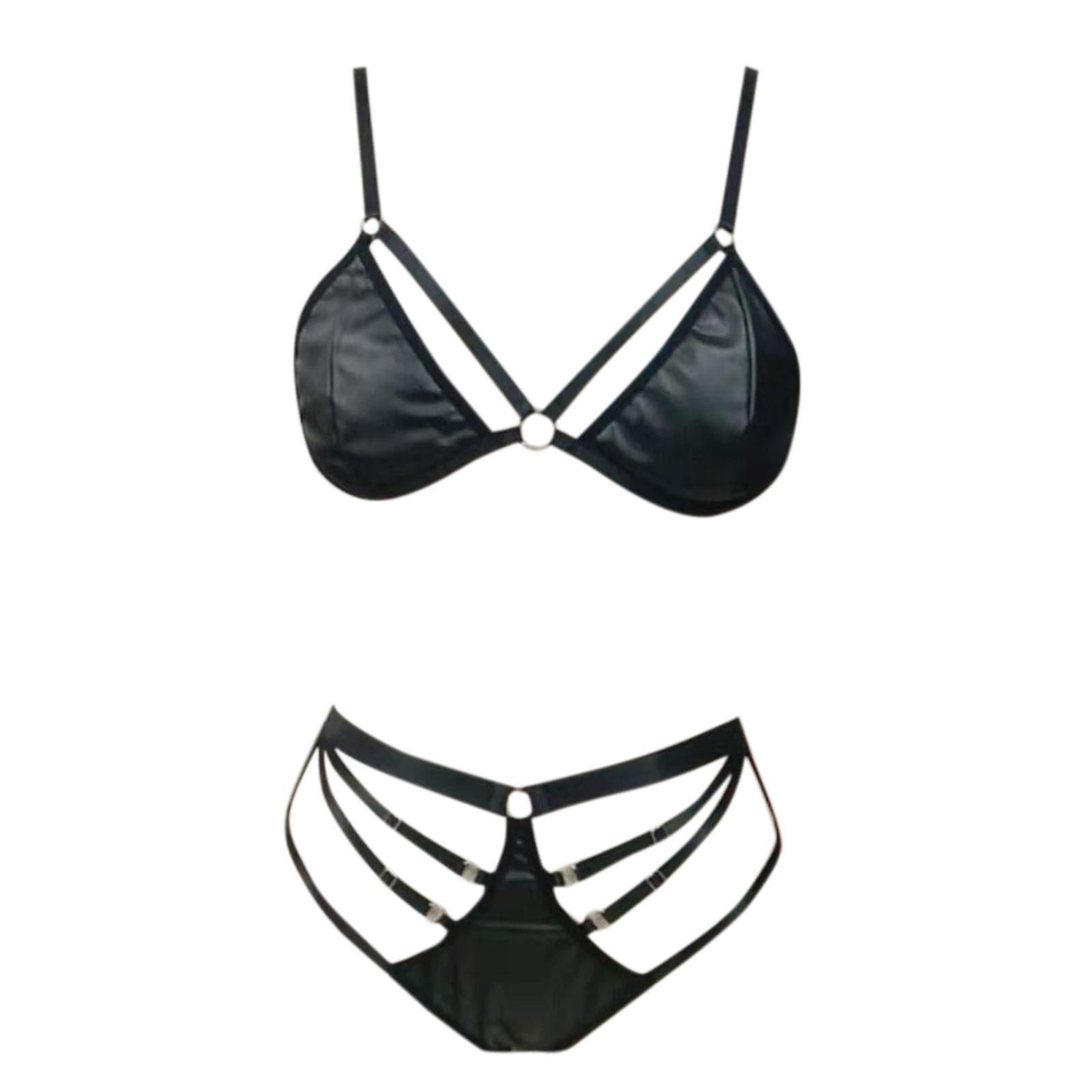 Fornecimento transfronteiriço da Europa e dos Estados Unidos comércio exterior sexy lingerie sexy mulheres negras envernizado jogo de couro envernizado conjunto de dois fabricantes em estoque