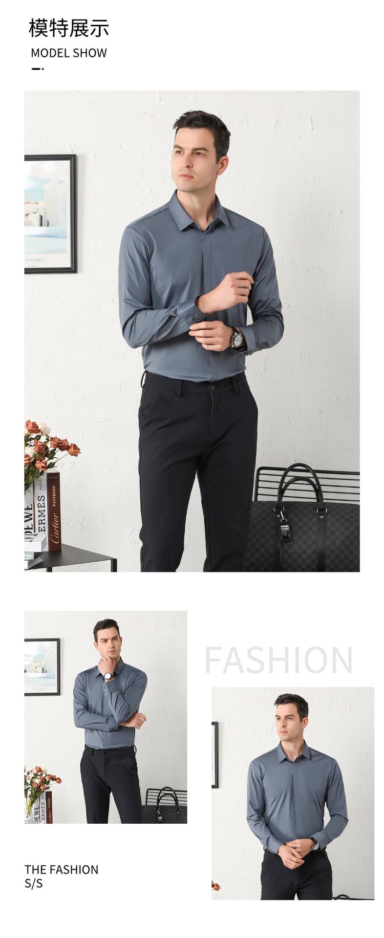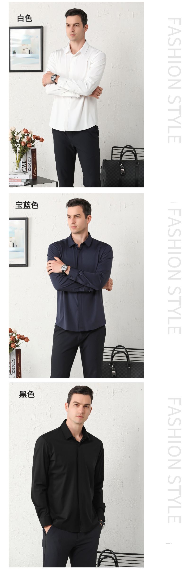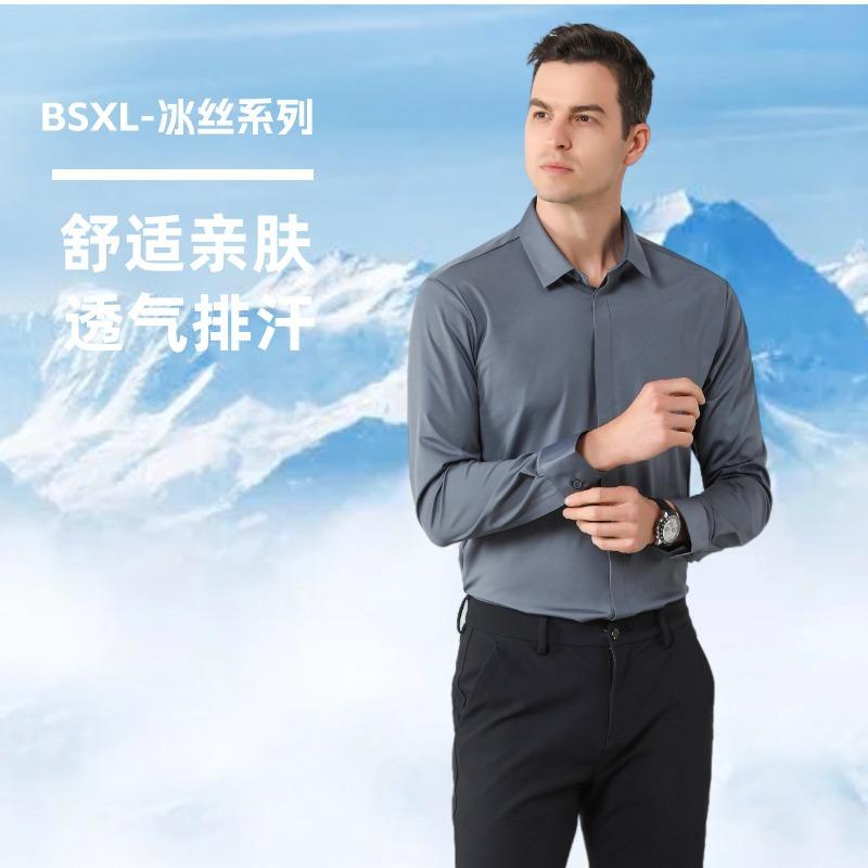 Camisa casual antirrugas de seda gelada de alta qualidade, camisa social masculina de manga comprida para primavera e verão, camisa que não pode ser passada a ferro, top masculina