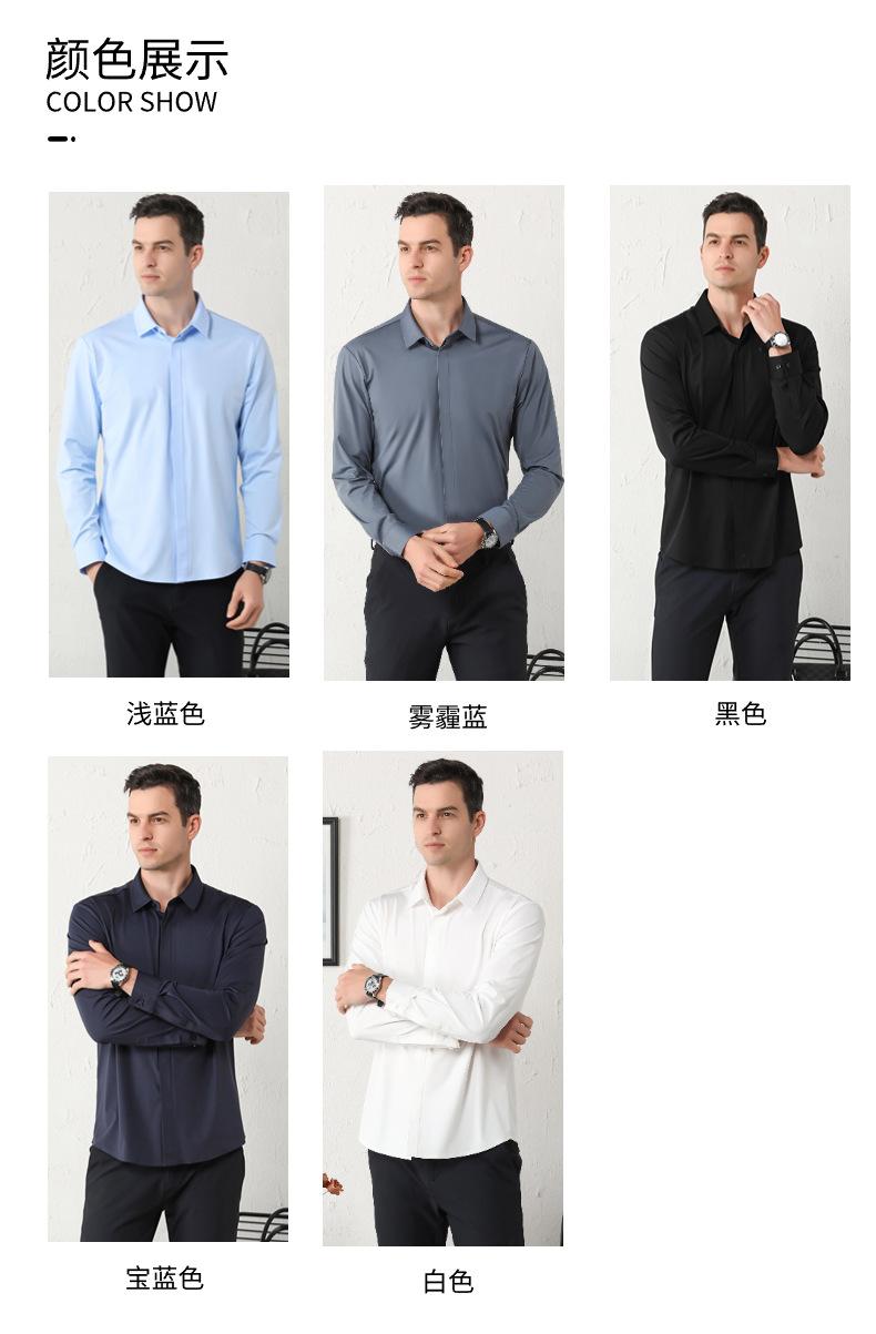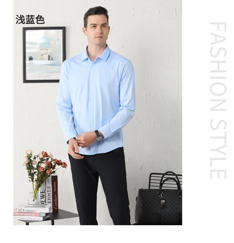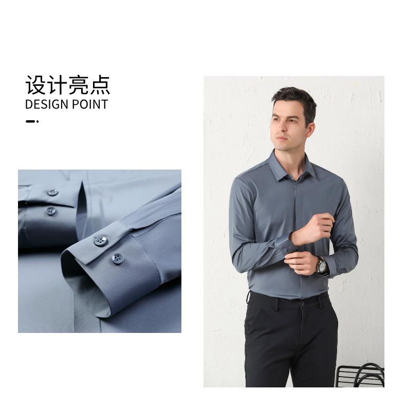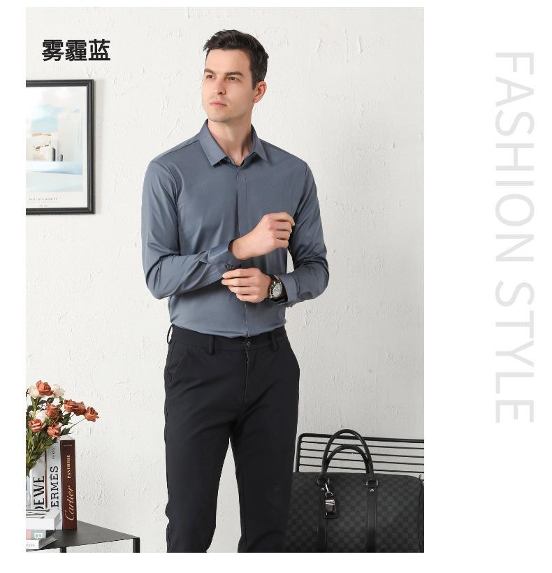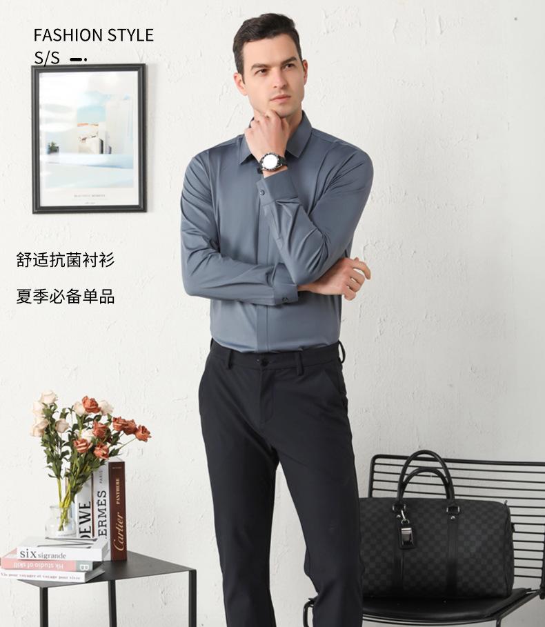 Camisa casual antirrugas de seda gelada de alta qualidade, camisa social masculina de manga comprida para primavera e verão, camisa que não pode ser passada a ferro, top masculina