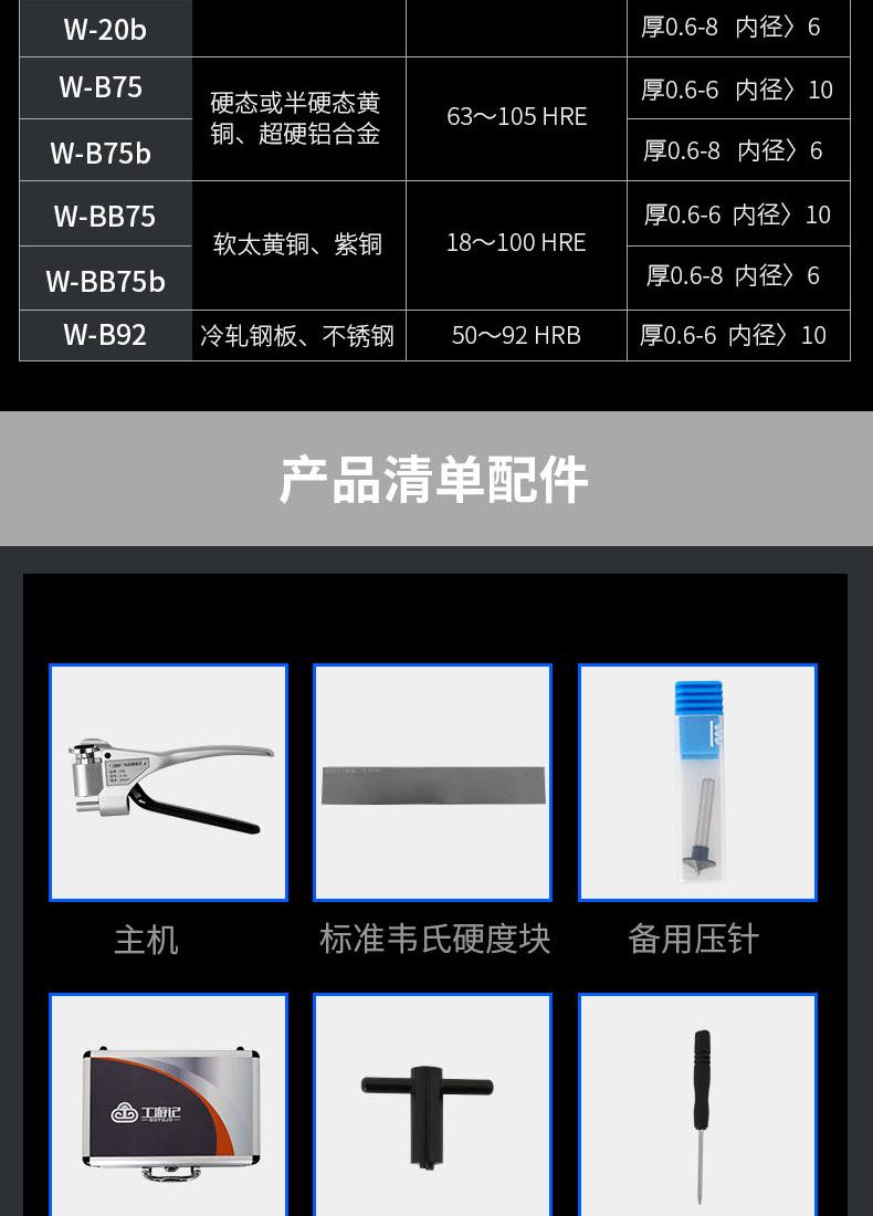 Testador de dureza Webster Perfil de liga de alumínio portátil Testador de dureza de aço inoxidável de latão W-20Ab75B92 Tipo
