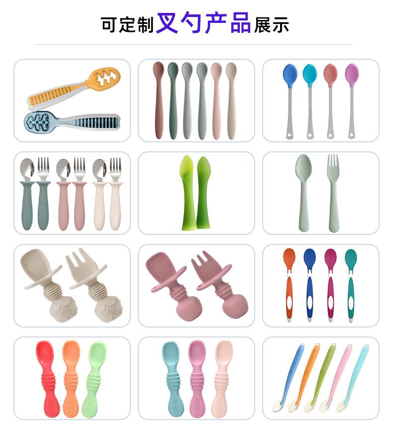 Colher Macia de Treinamento para Comida de Bebê em Silicone Personalizada de Grau Alimentício com Cabos Longo e Curto, Colher Garfo Sensível à Temperatura para Lamber Pasta de Arroz