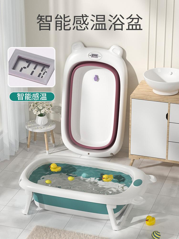 Compre Banheira do bebê banheira dobrável bebê banheira pode sentar e deitar banheira com termômetro balde de banho doméstico no atacado no Joom.pro