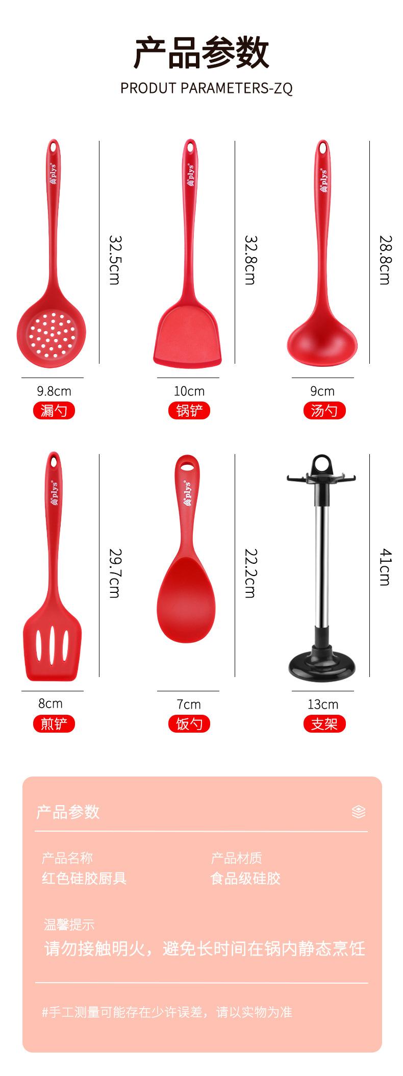 [Black] Silicone-spatula + spoon + colander + spatula + rice spoon + bracket [five-piece set