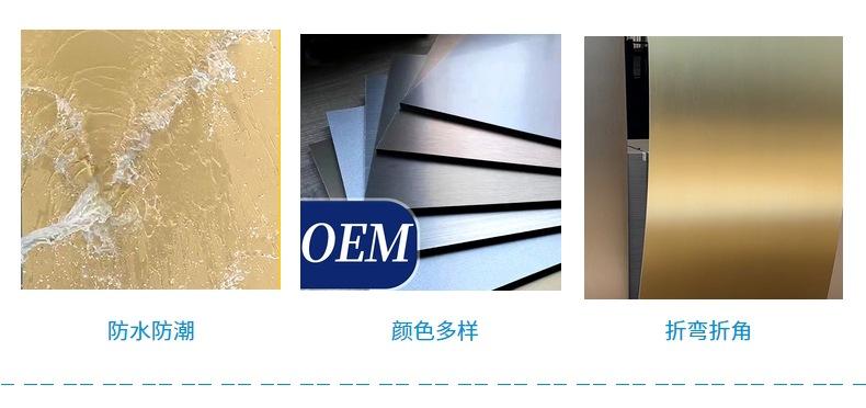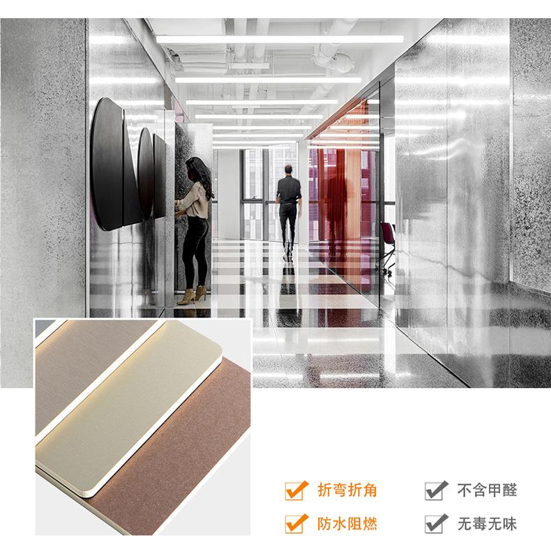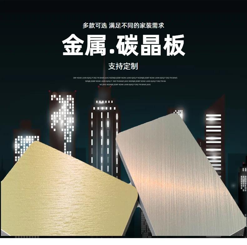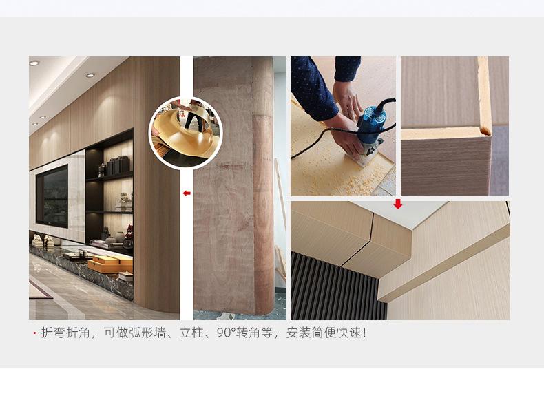 Painel de parede de placa de metal de madeira de carvão de bambu personalizado de 5 mm à prova d'água e umidade, decoração de parede, placa de cristal de carbono, folheado de madeira curvado