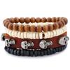 Pulseira de Couro Trançado Simples Retrô Estilo Europeu e Americano Direto da Fábrica Caveira de Liga Pulseira de Couro Terno Multicamadas