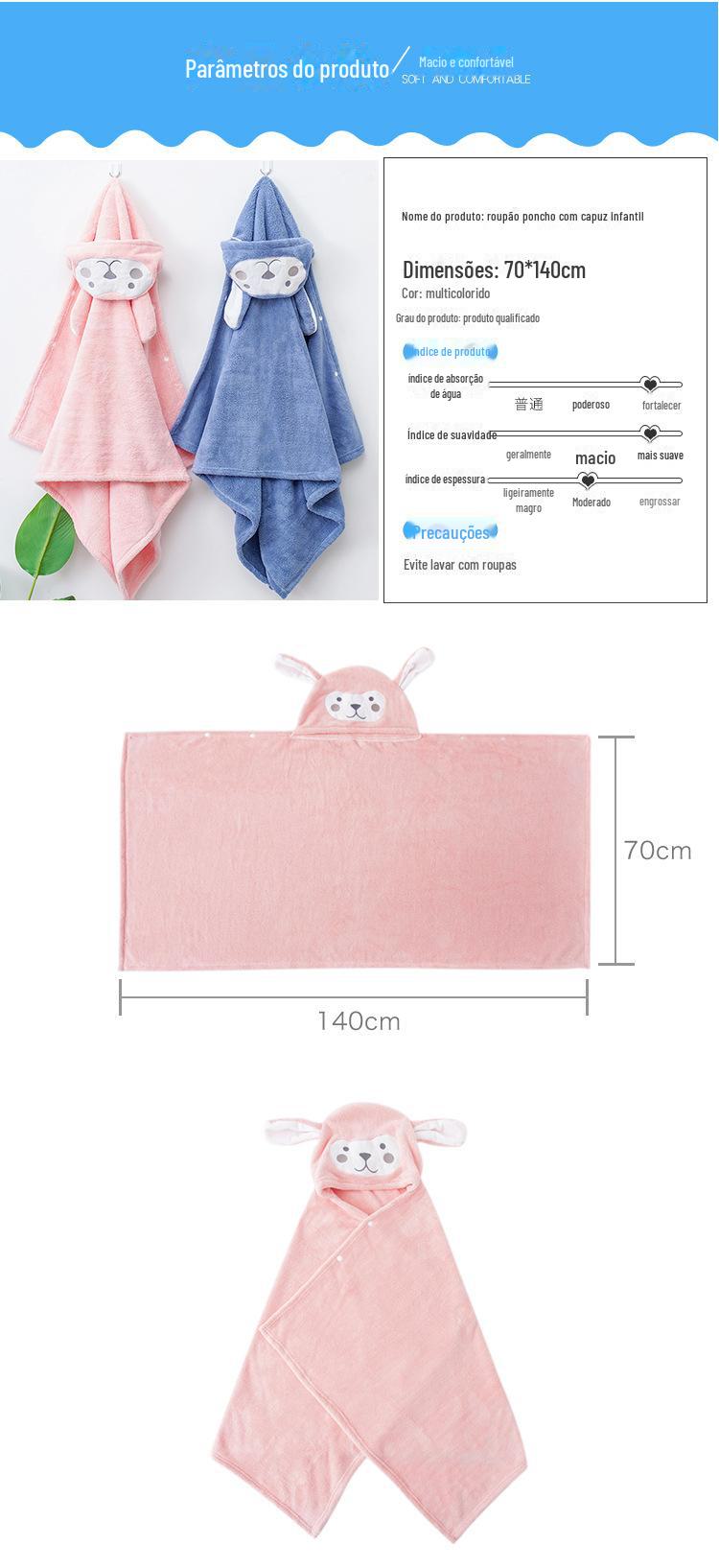 Roupão Infantil Toalha de Banho com Capuz para Bebê Vestível Fleece Coral Desenho Animado Infantil Natação Banho Capa Estilo Capa Secagem Rápida