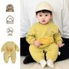 Algodão Bebê Sem Costura Macacão Unido Recém-Nascido Primavera e Outono Roupa de Escalada Roupas de Bebê Recém-Nascido Chapéus de Cadarço com Duas Orelhas