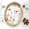 Jumpsuit, I love my mom hat (with bone), I love Daddy hat (with bone)