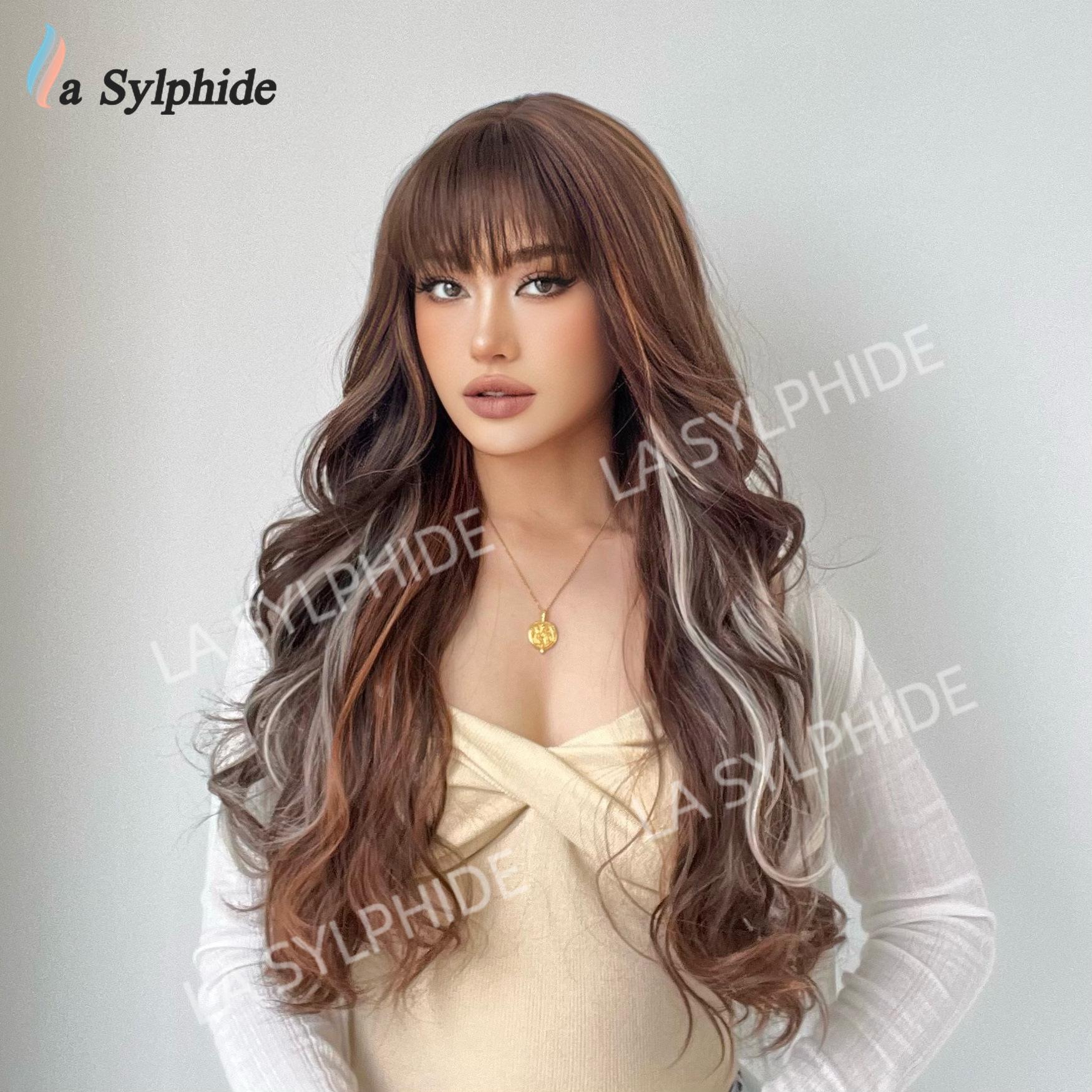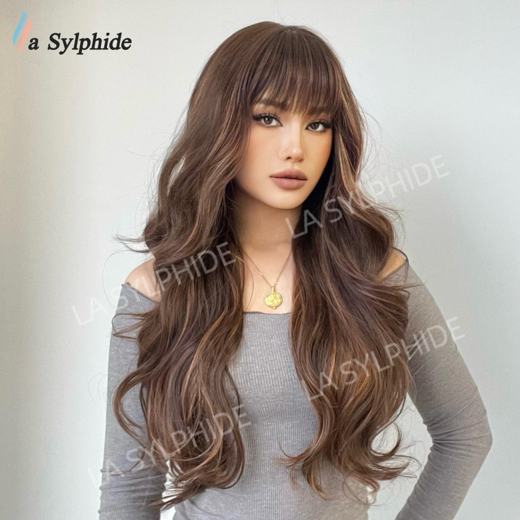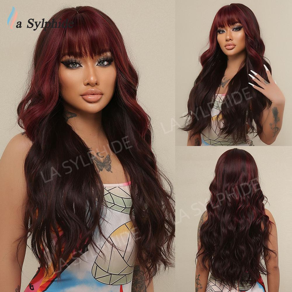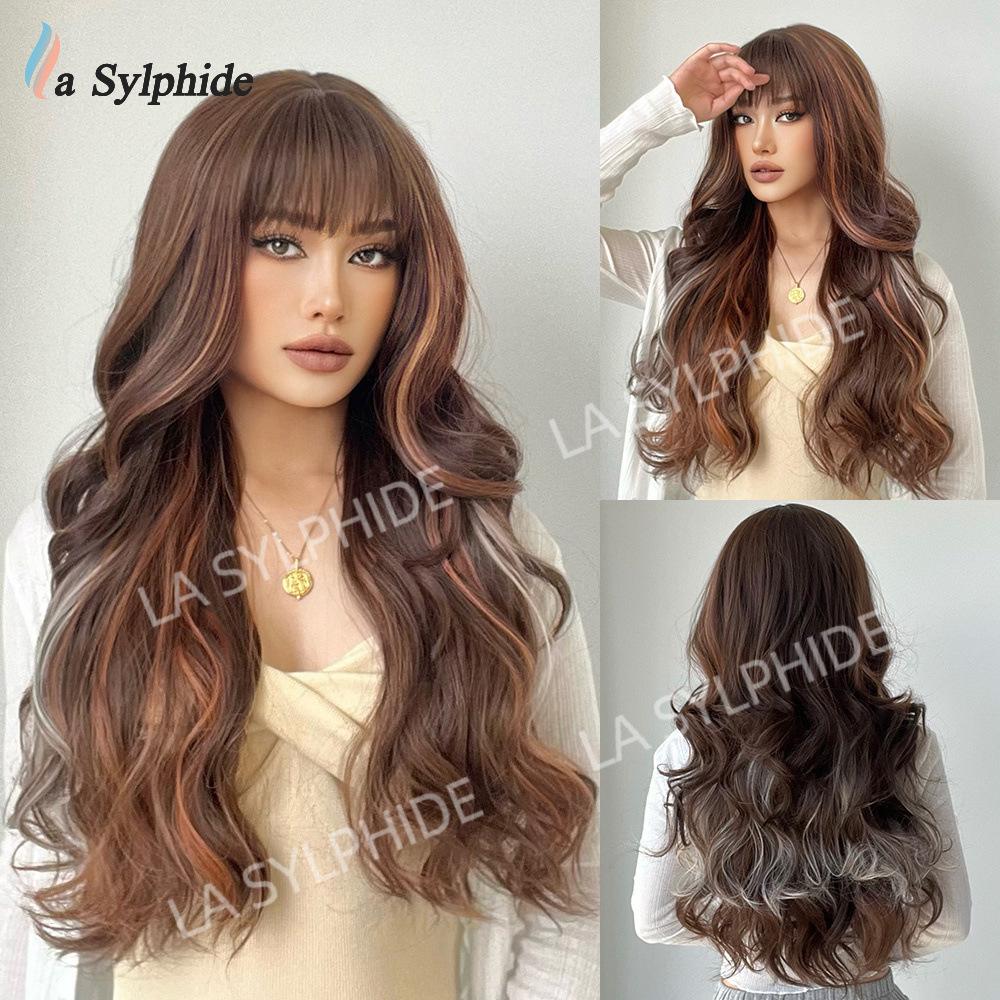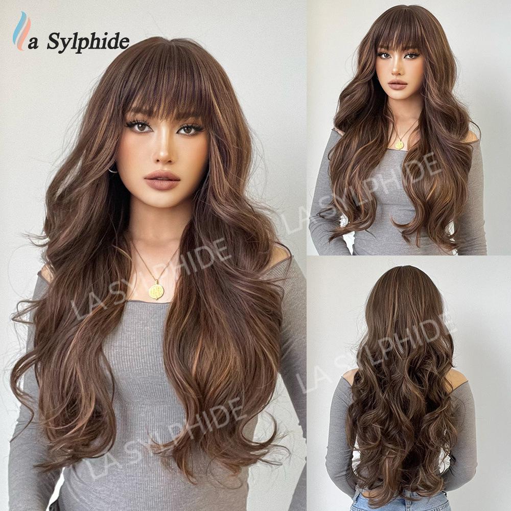 Novo Natal Diário Cor Chocolate Médio Longo Cabelo Encaracolado Europeu e Americano Macio Mecanismo de Fibra Química Diária Capa de Cabeça Completa