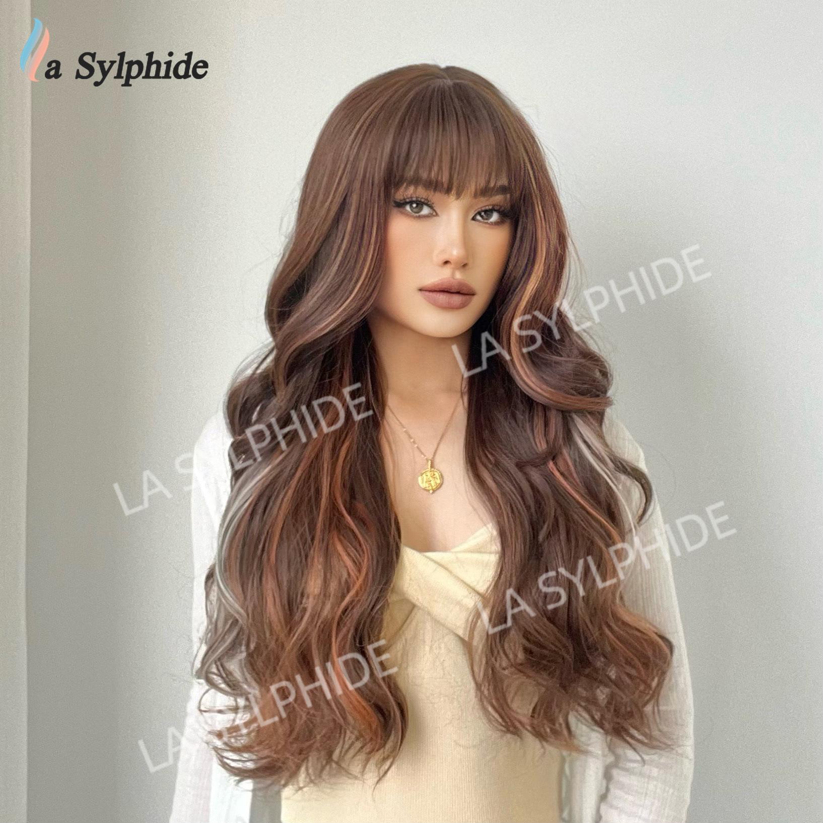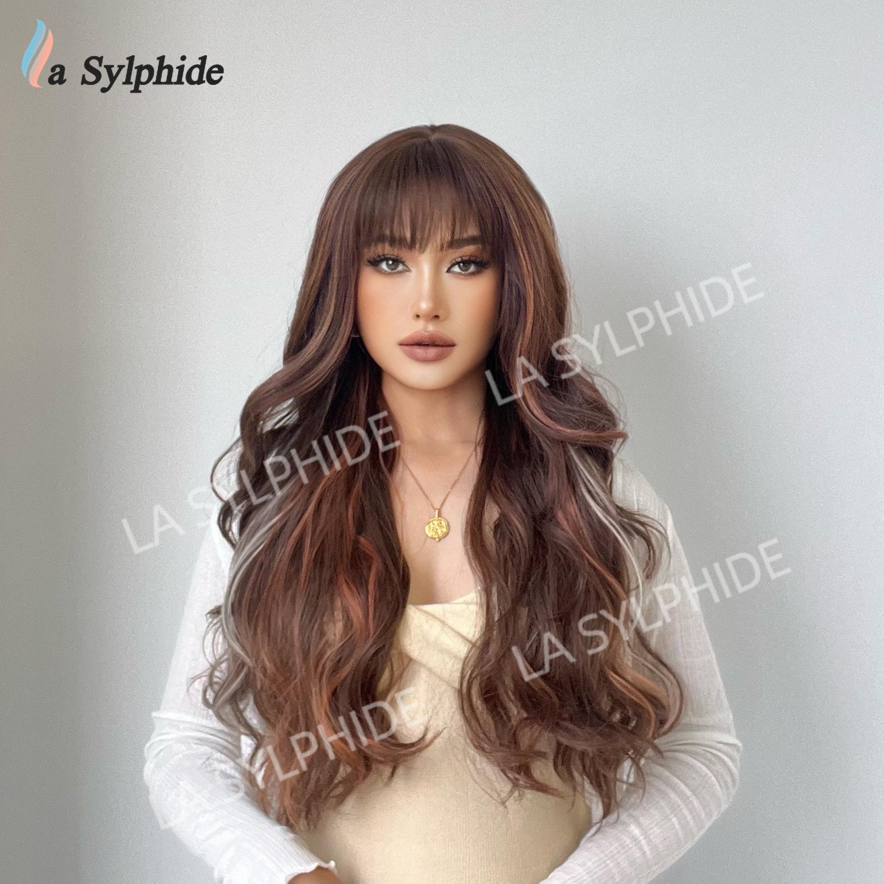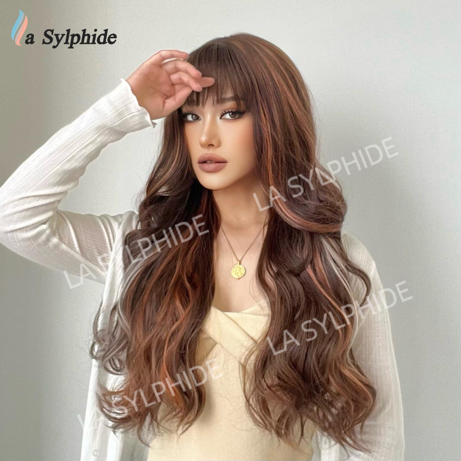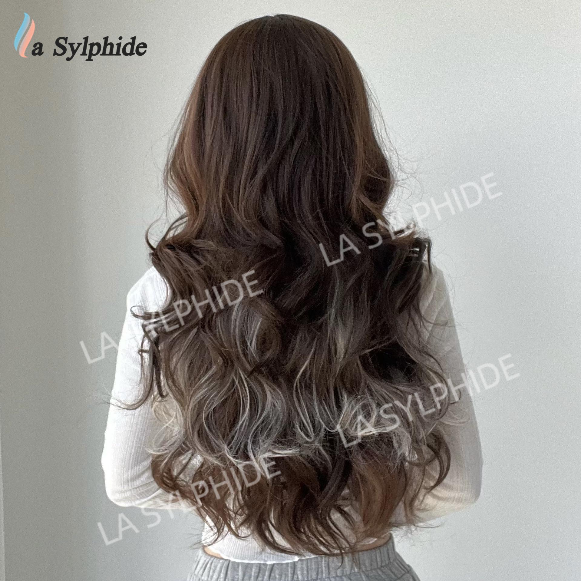 Novo Natal Diário Cor Chocolate Médio Longo Cabelo Encaracolado Europeu e Americano Macio Mecanismo de Fibra Química Diária Capa de Cabeça Completa