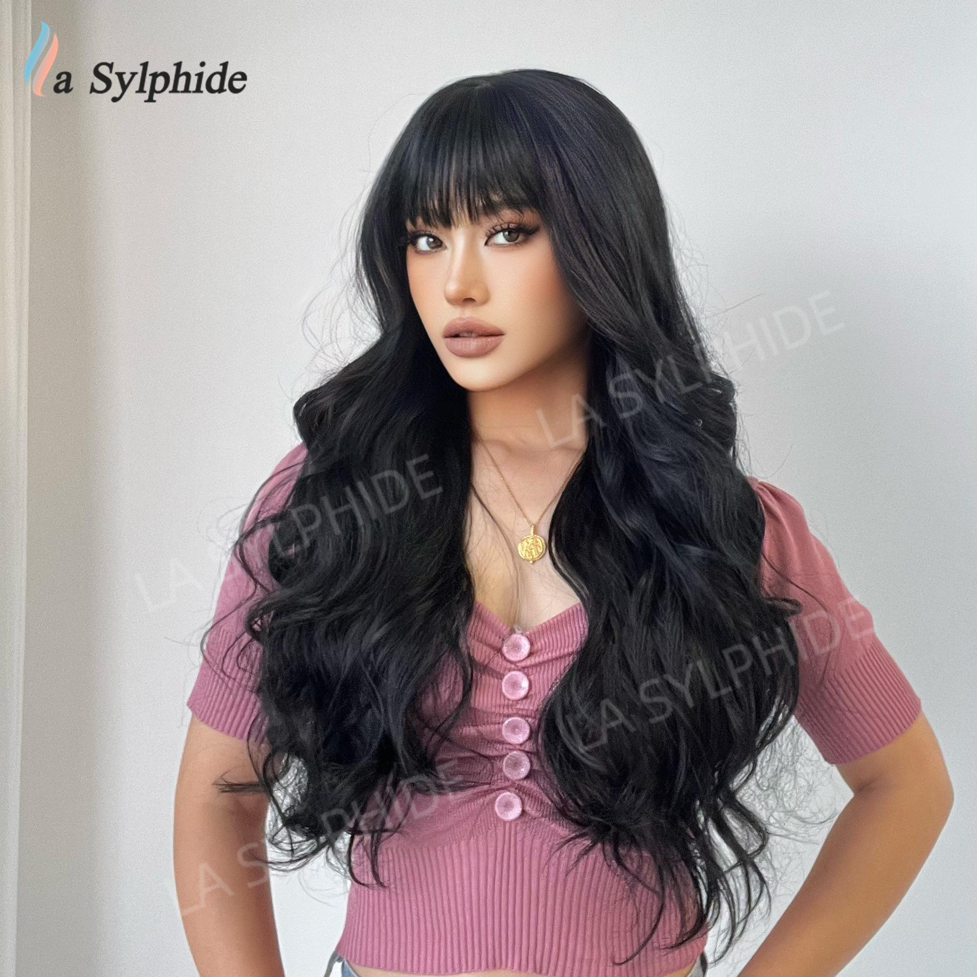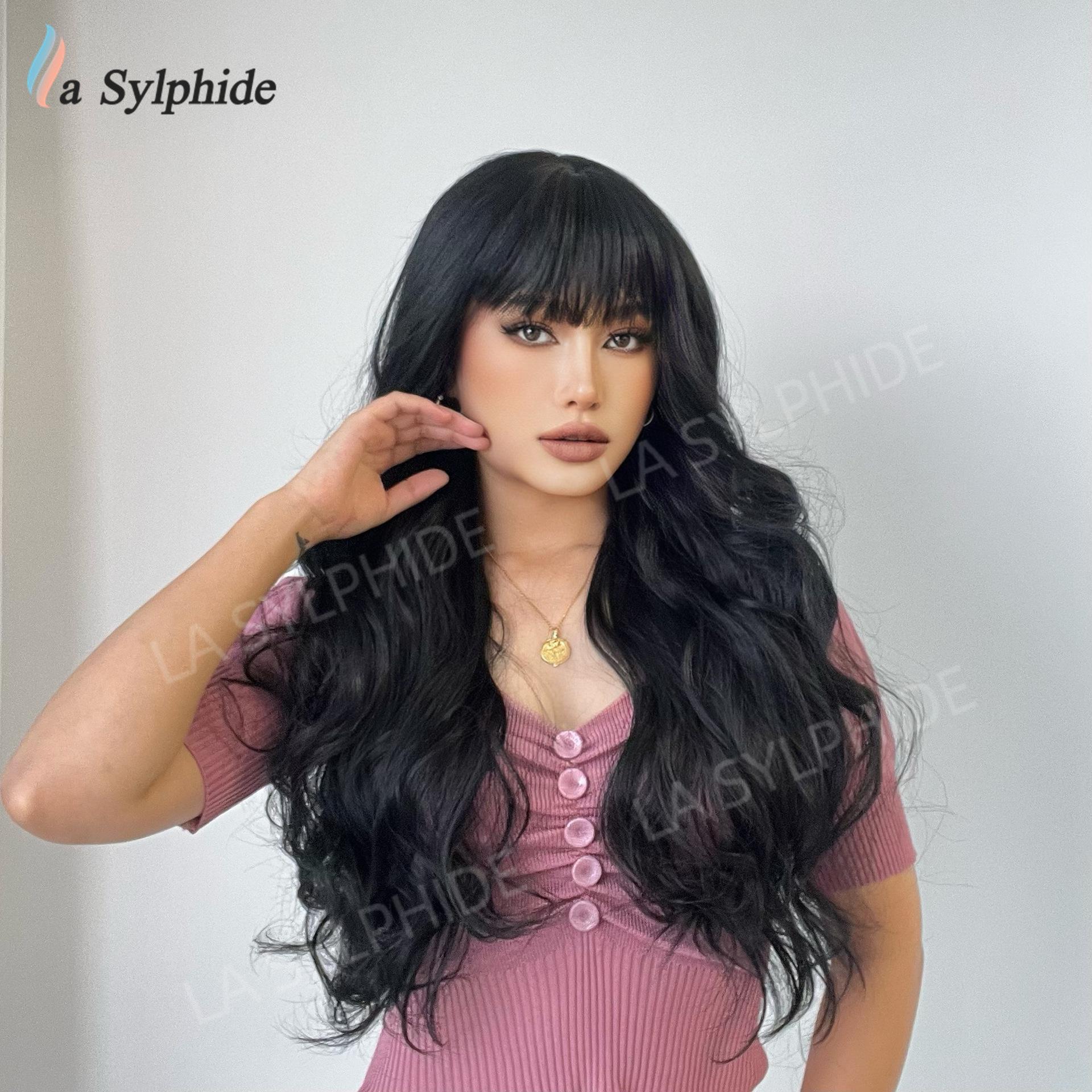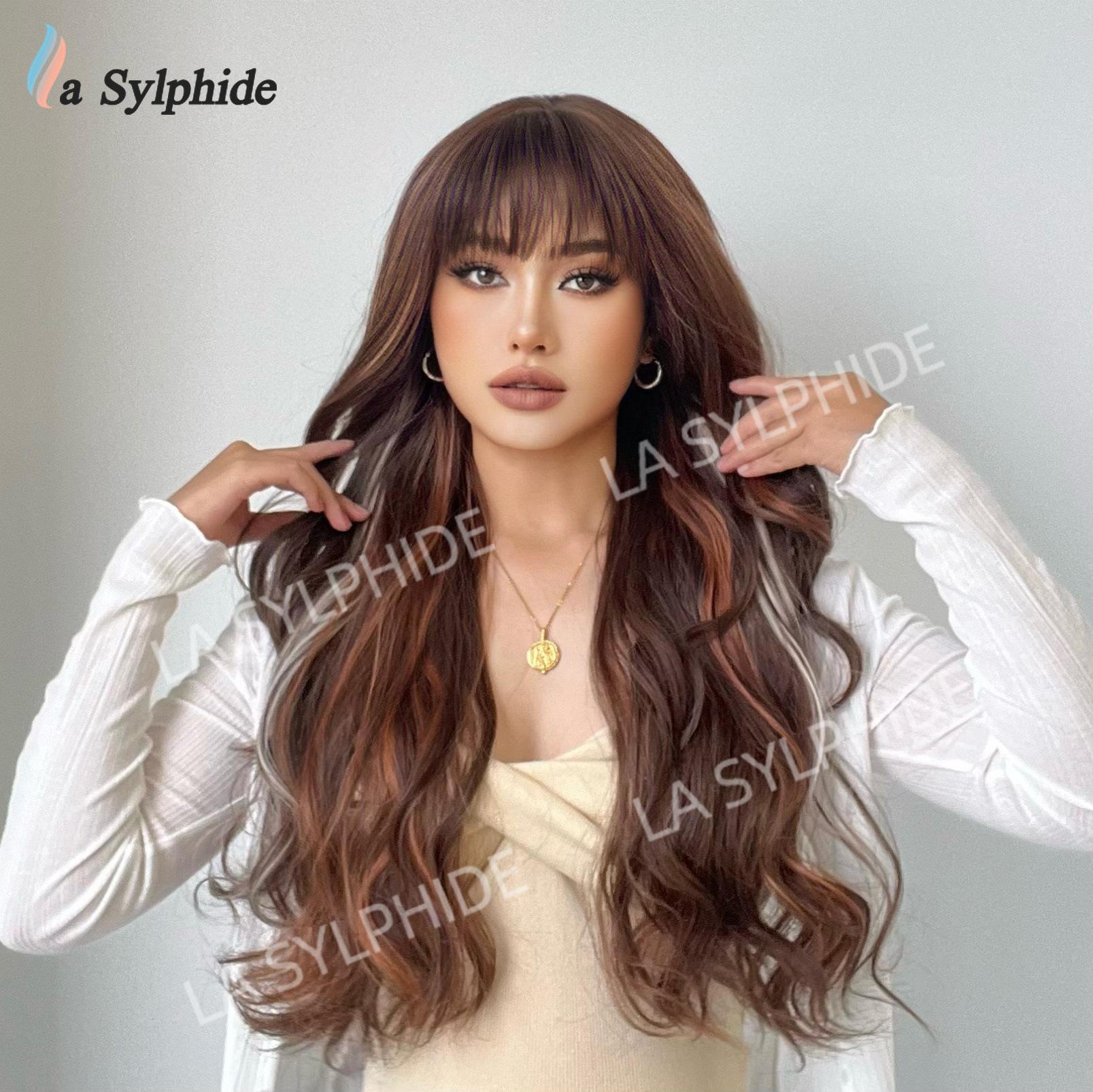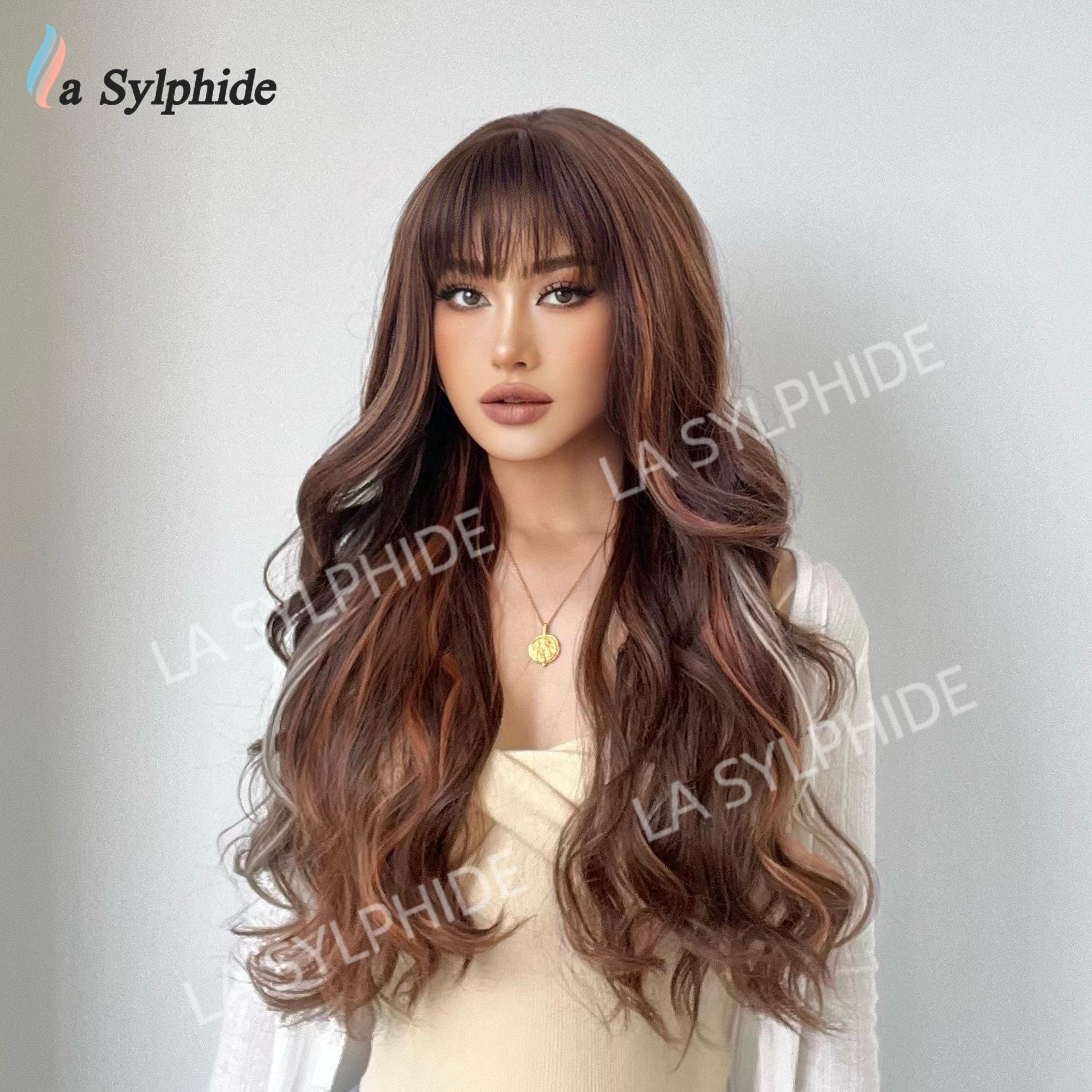 Long curly hair neat bangs
