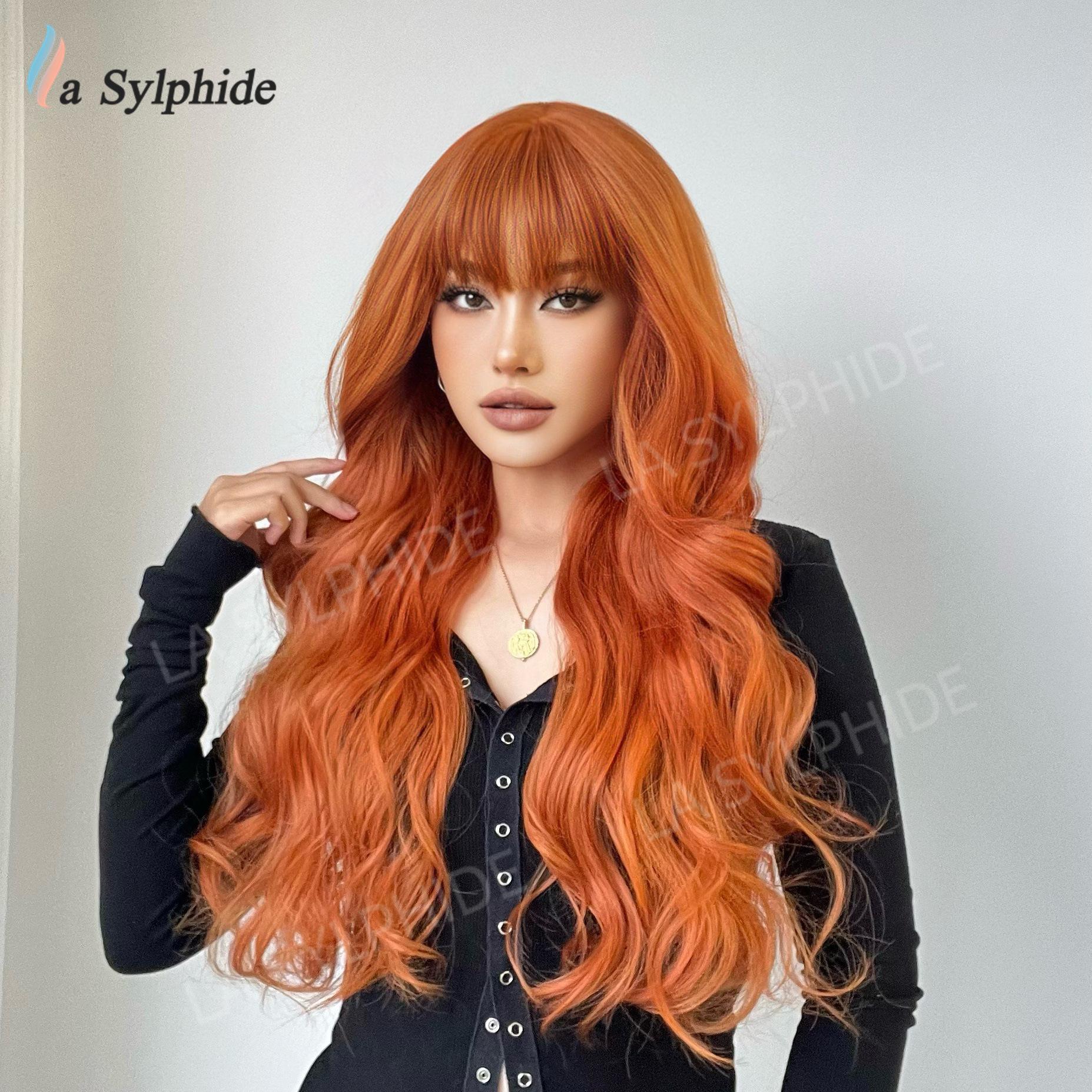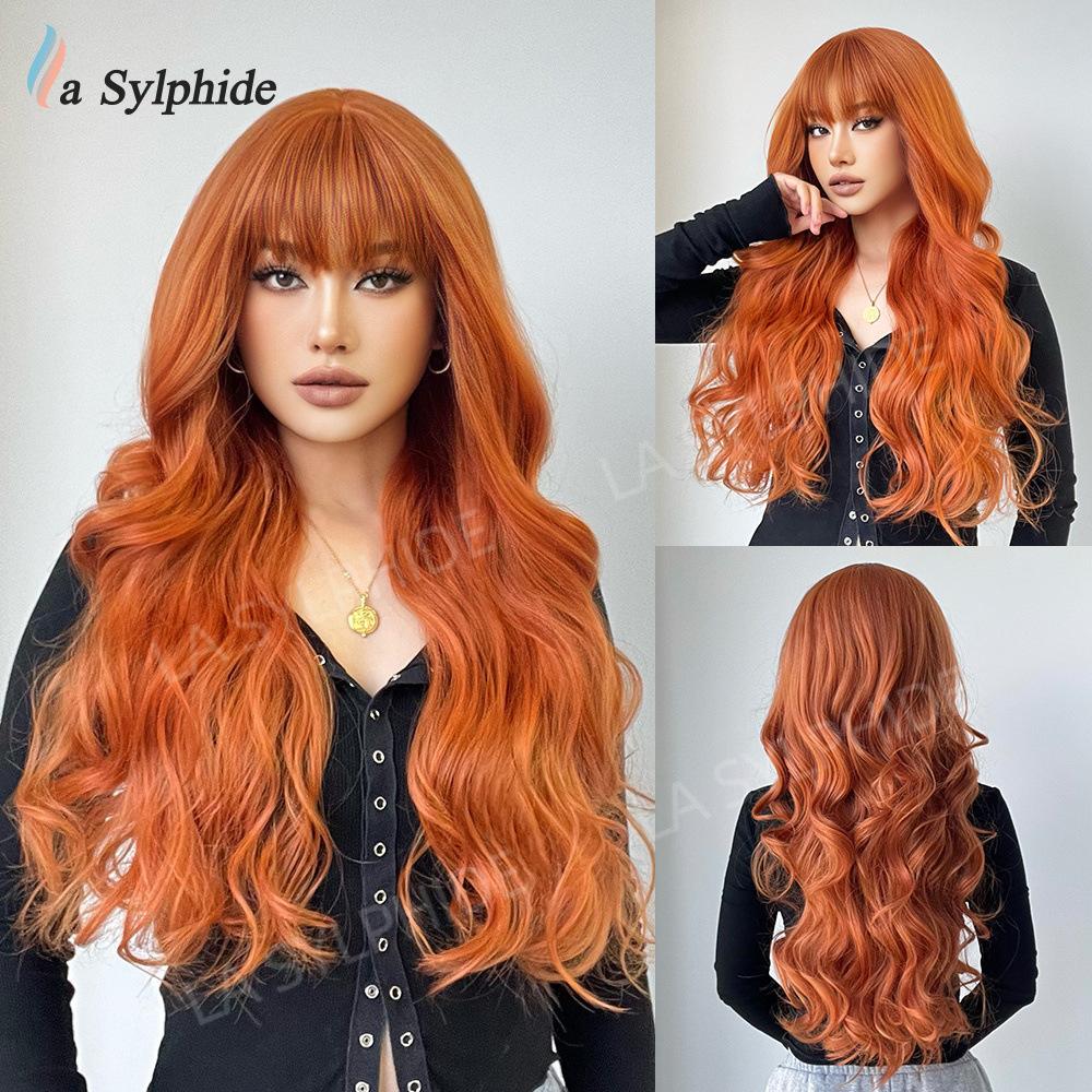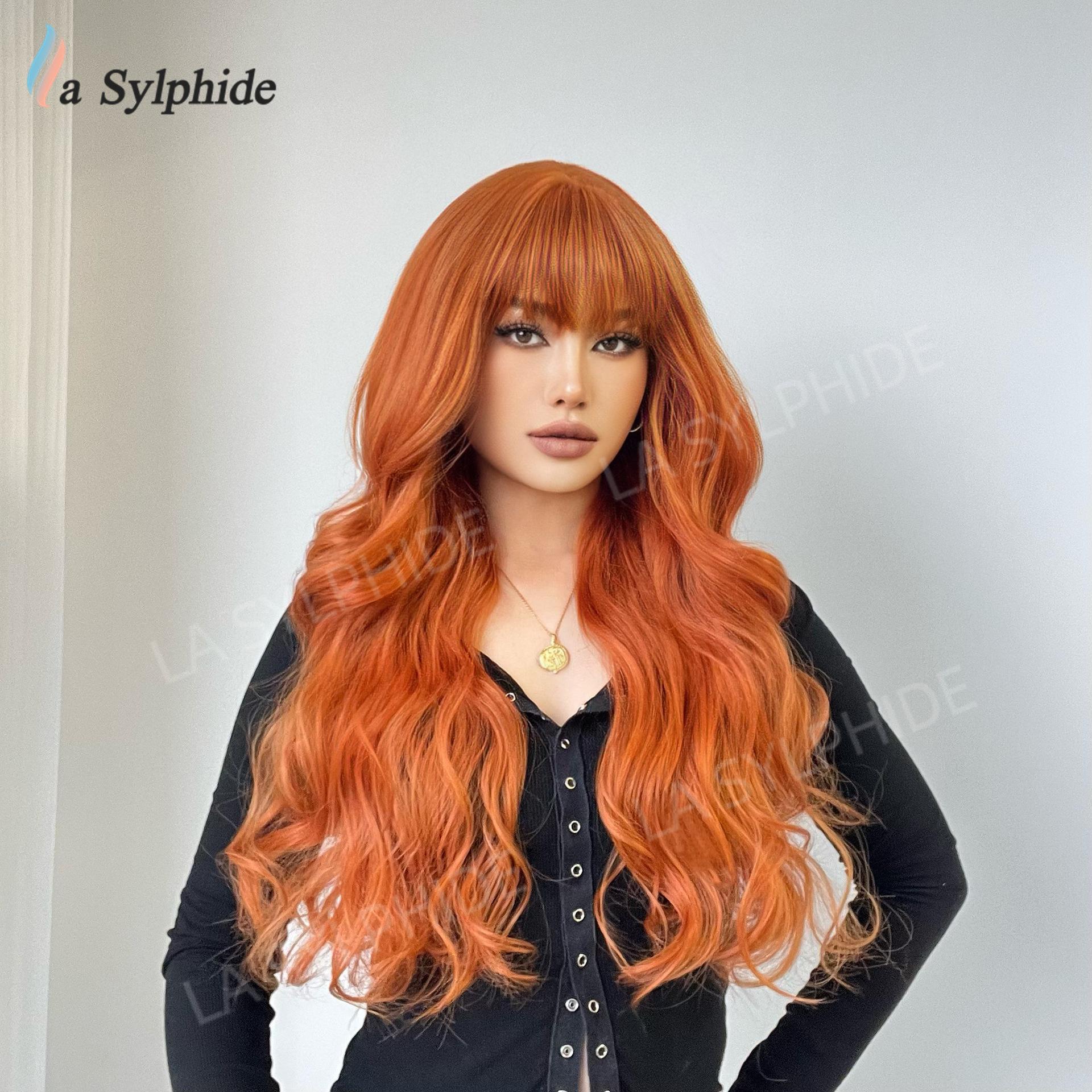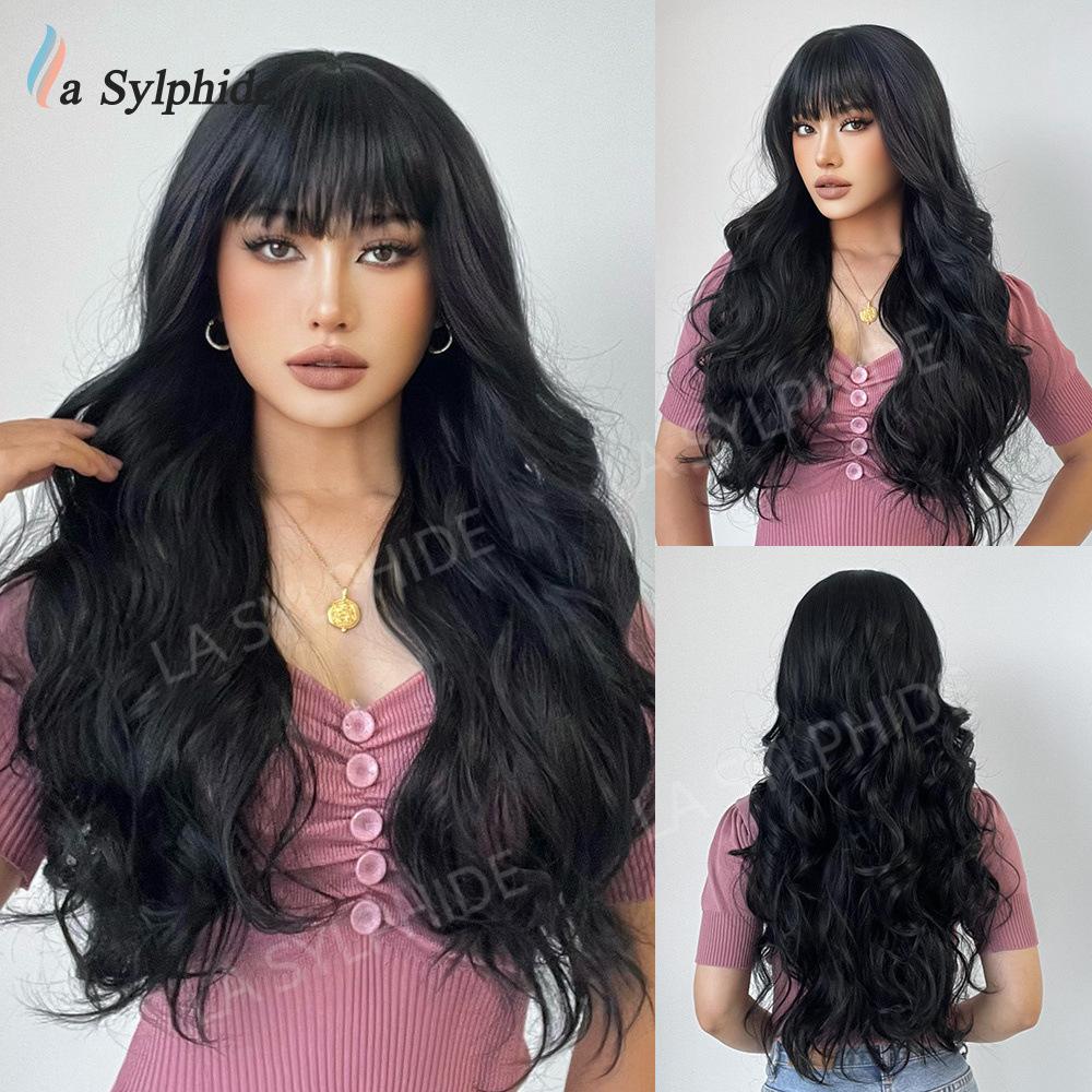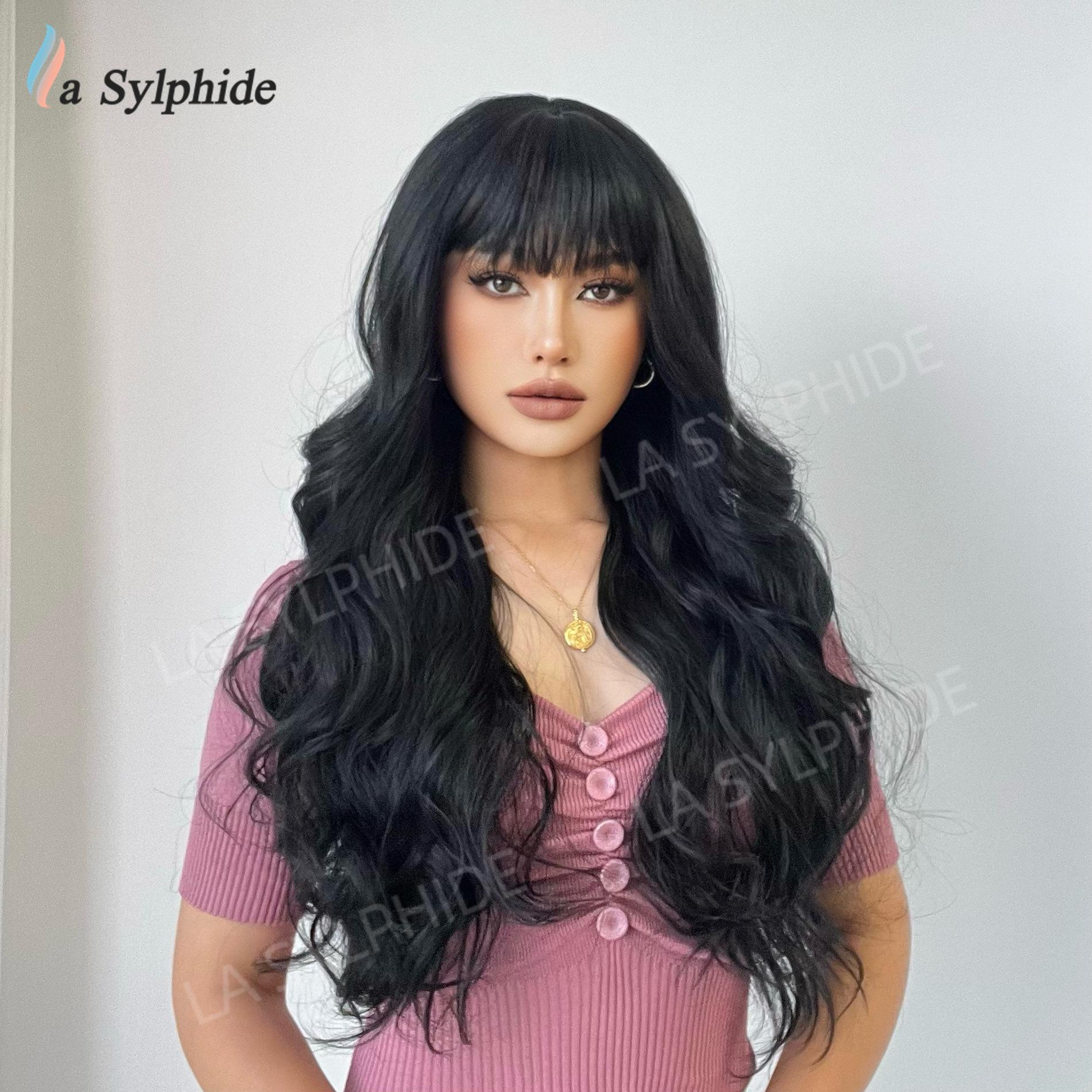 Long curly hair neat bangs