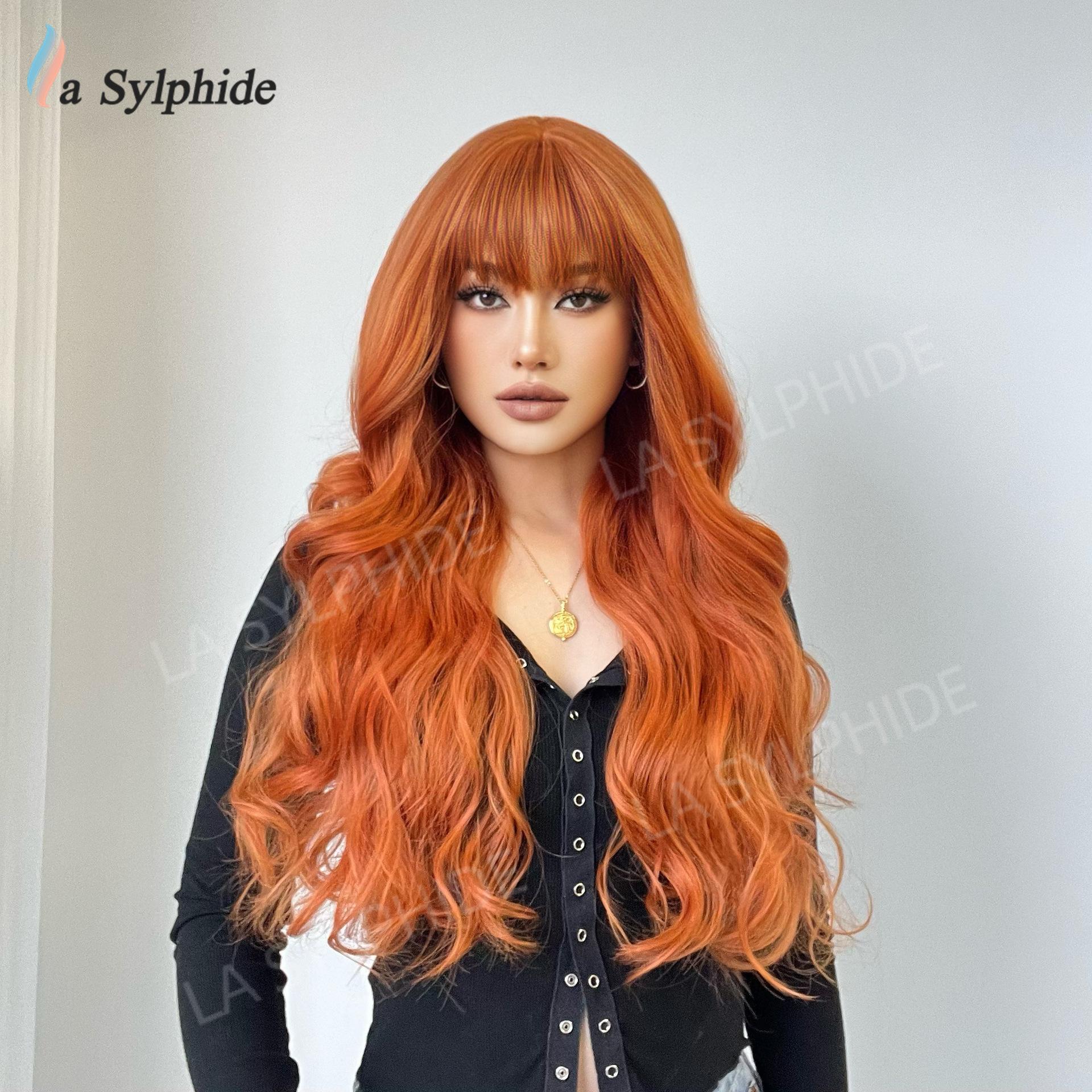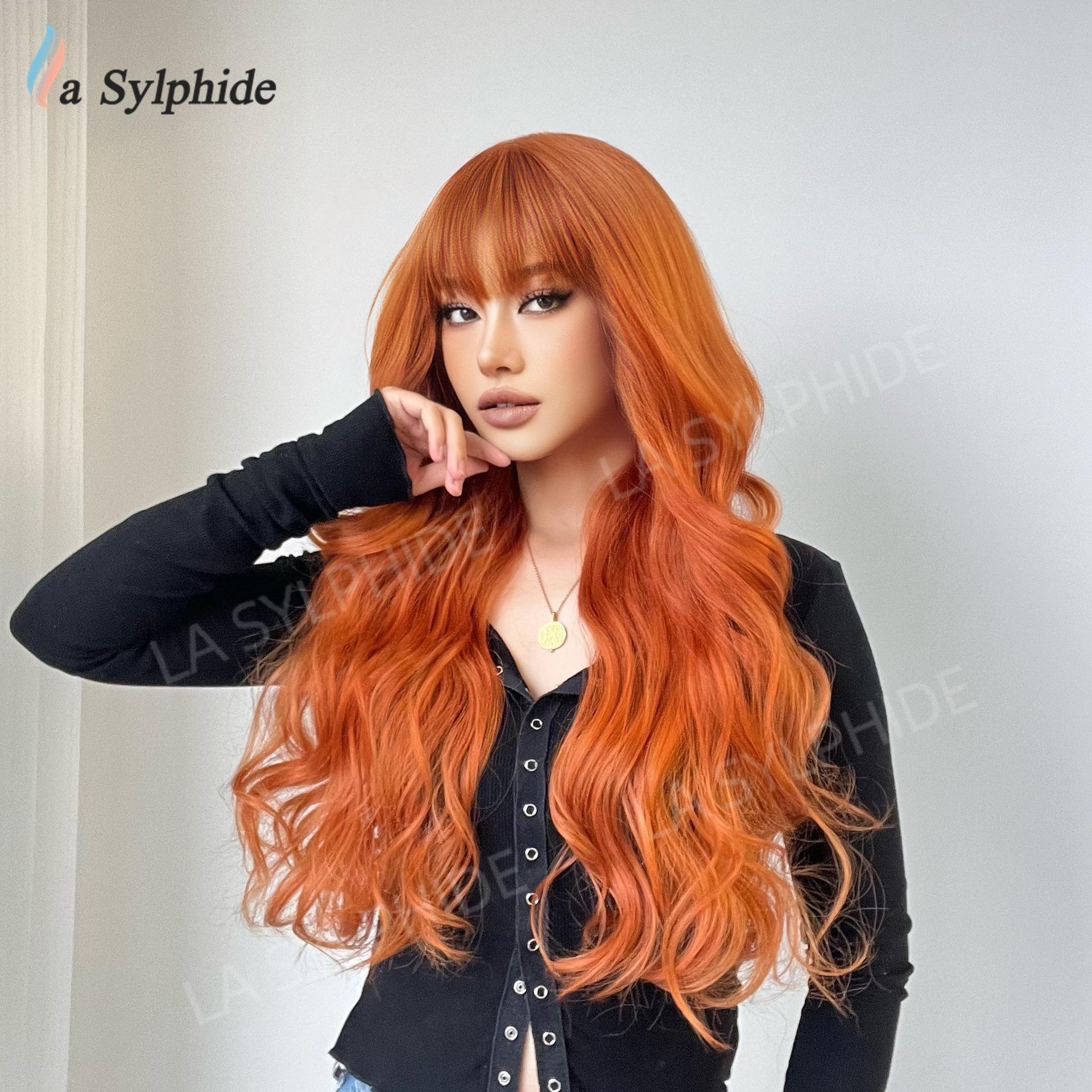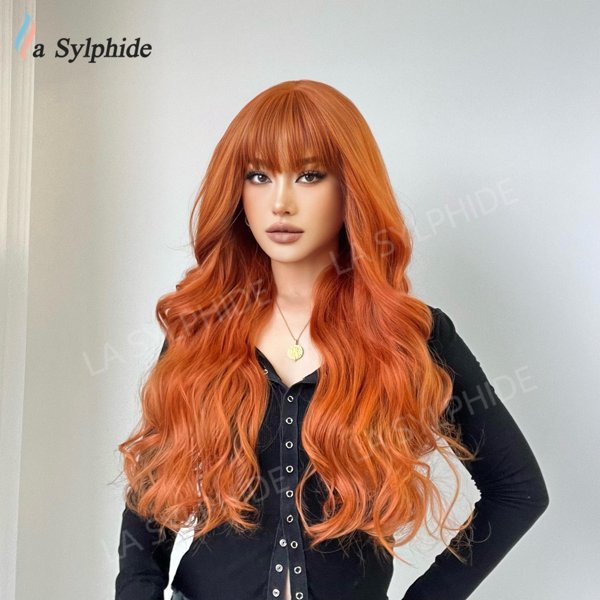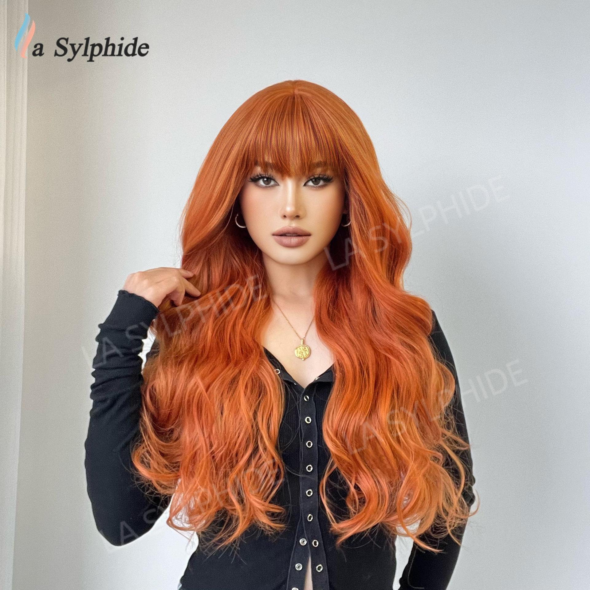 Long curly hair neat bangs