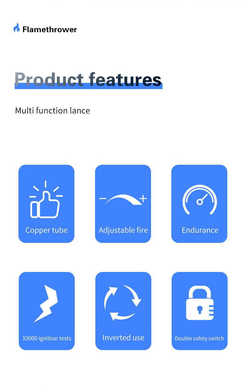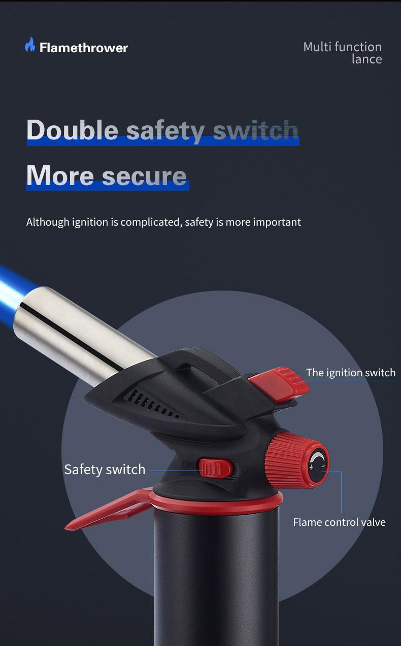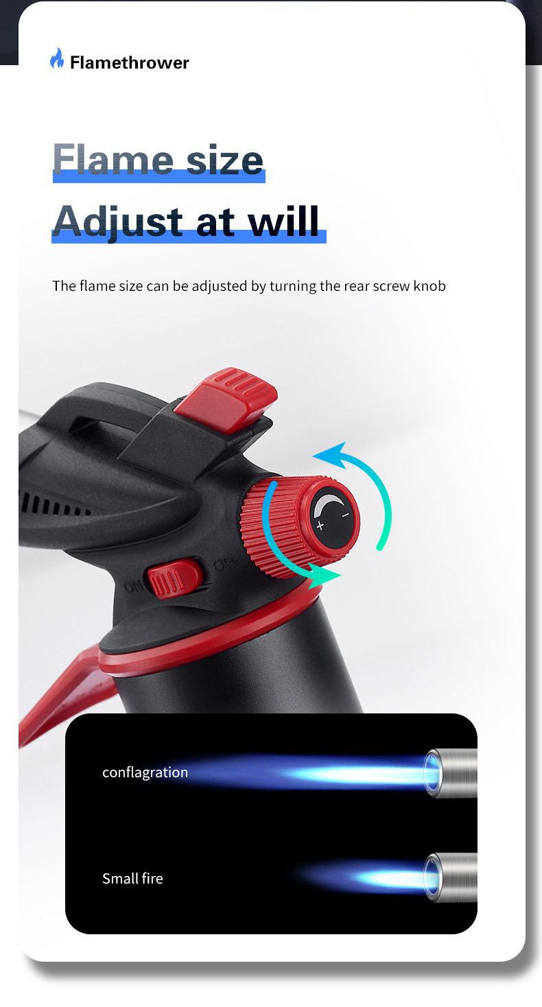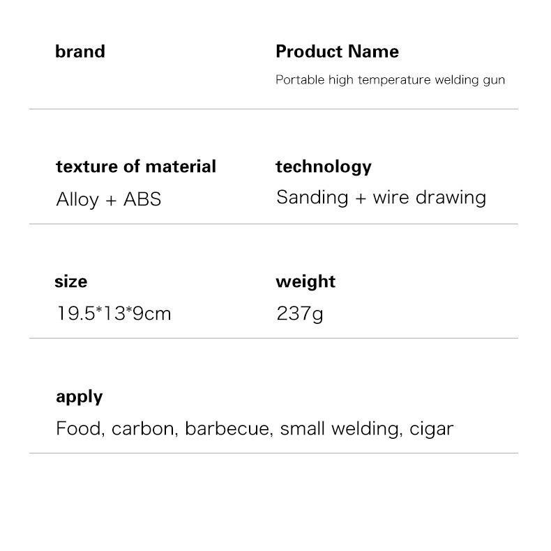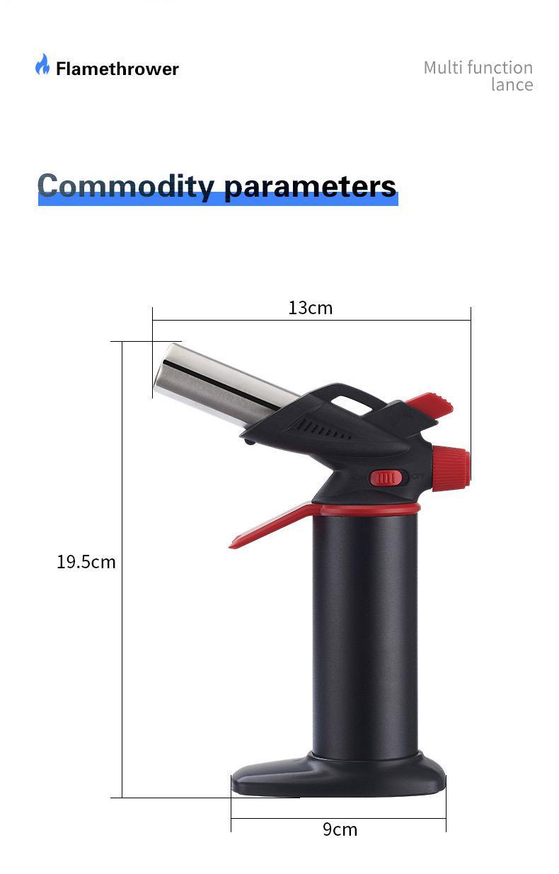 1:Nome do produto: pistola de pulverização de chama:2:Material do produto: alumínio + ABS,3:Cor do produto: preto, prata, vermelho,4:Tamanho do produto: 19,5X13X9cm,5:Tamanho da caixa do produto: 43,5*28,5*42cm,6:Embalagem de caixa 40PCS,7:Peso bruto único 237 gramas