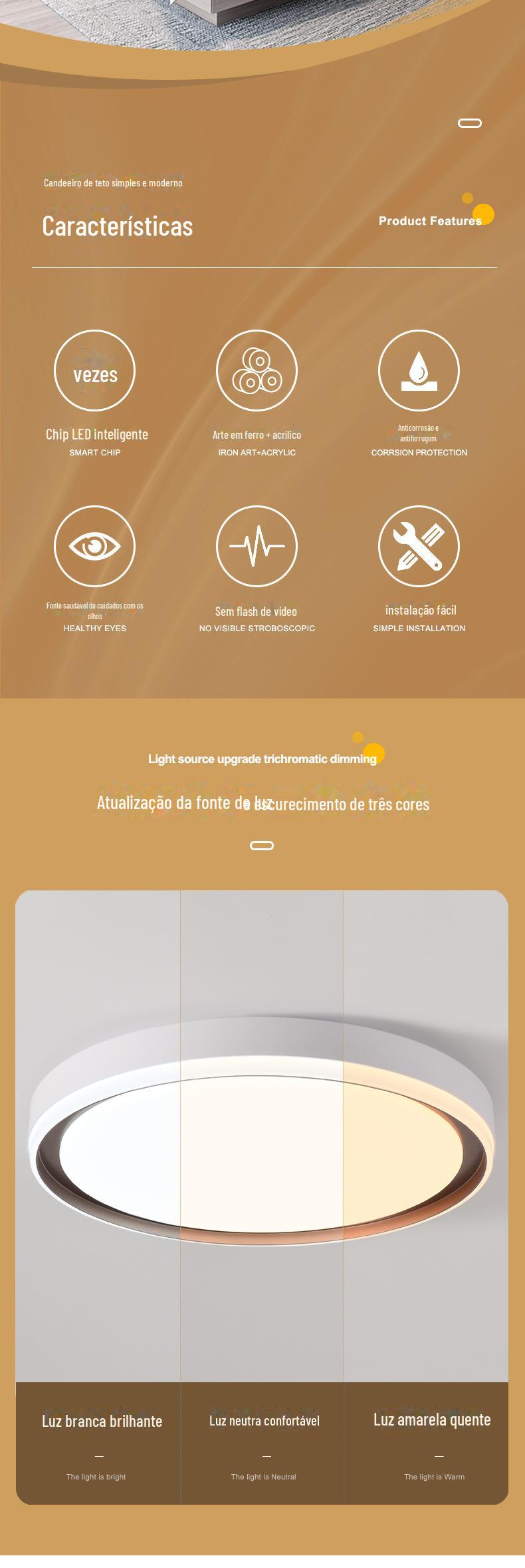 Round 41cm bedroom 36W Tricolor dimming