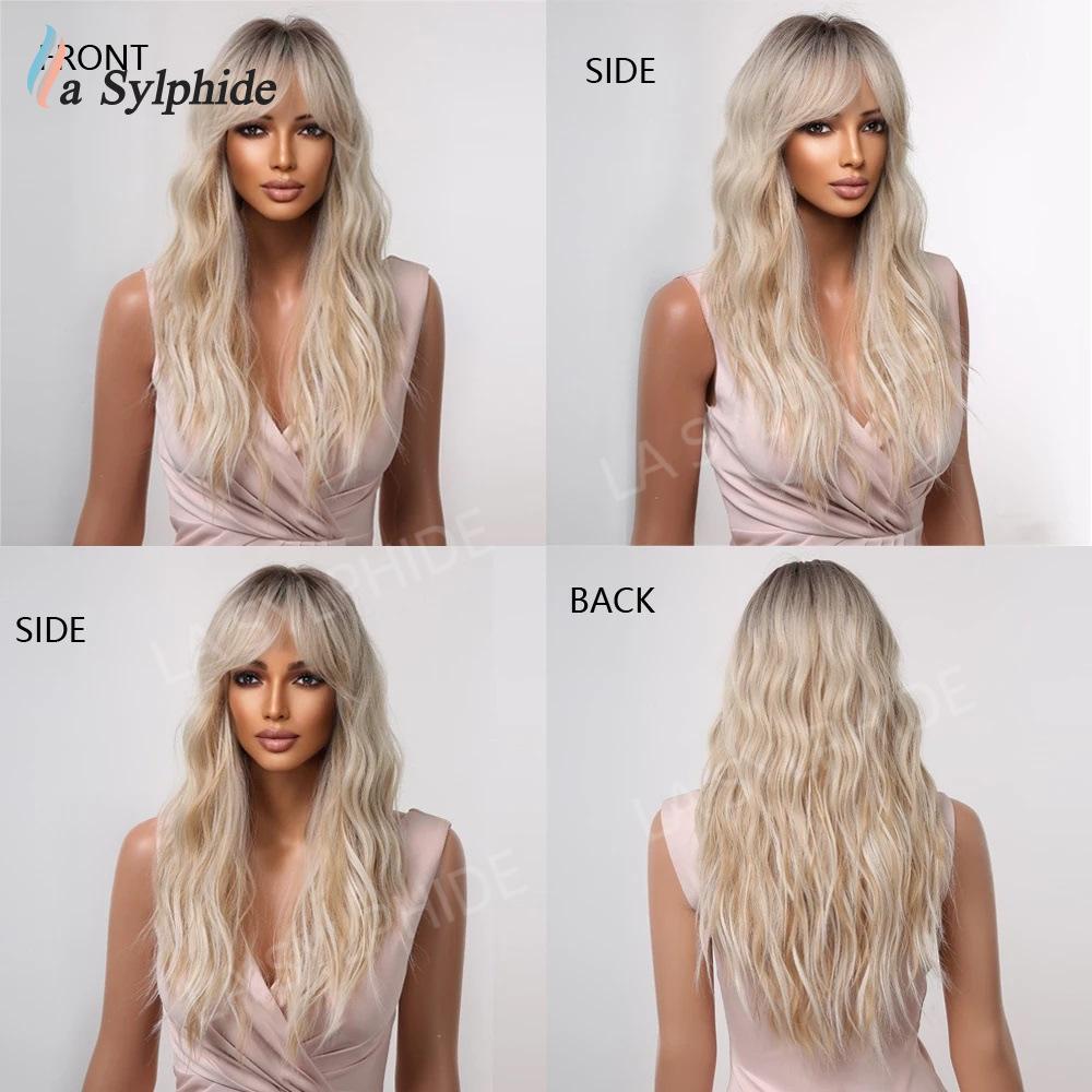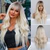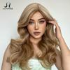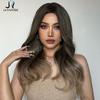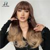2024 Europeu e americano nova chegada marrom gradiente branco ouro longo cabelo cacheado franja peruca mecanismo de cabelo feminino perucas de fibra química