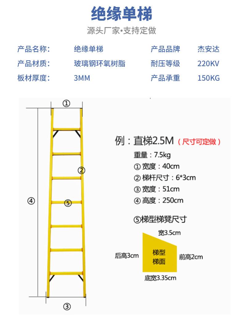 JAD Jianda FRP Escada Plana FRP Escada Reta Isolada FRP para Eletricistas Escada Única Isolada para Manutenção