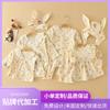 Macacão Waffle Personalizado para Bebê com Meio Decote nas Costas Feminino Primavera & Outono Macacão de Manga Comprida Vestido Boné de Renda Fofo