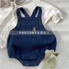 Ins estilo coreano primavera e verão novo macacão para meninos e meninas bebê estilo ocidental urso bordado bolso alça saco peido rastejante terno