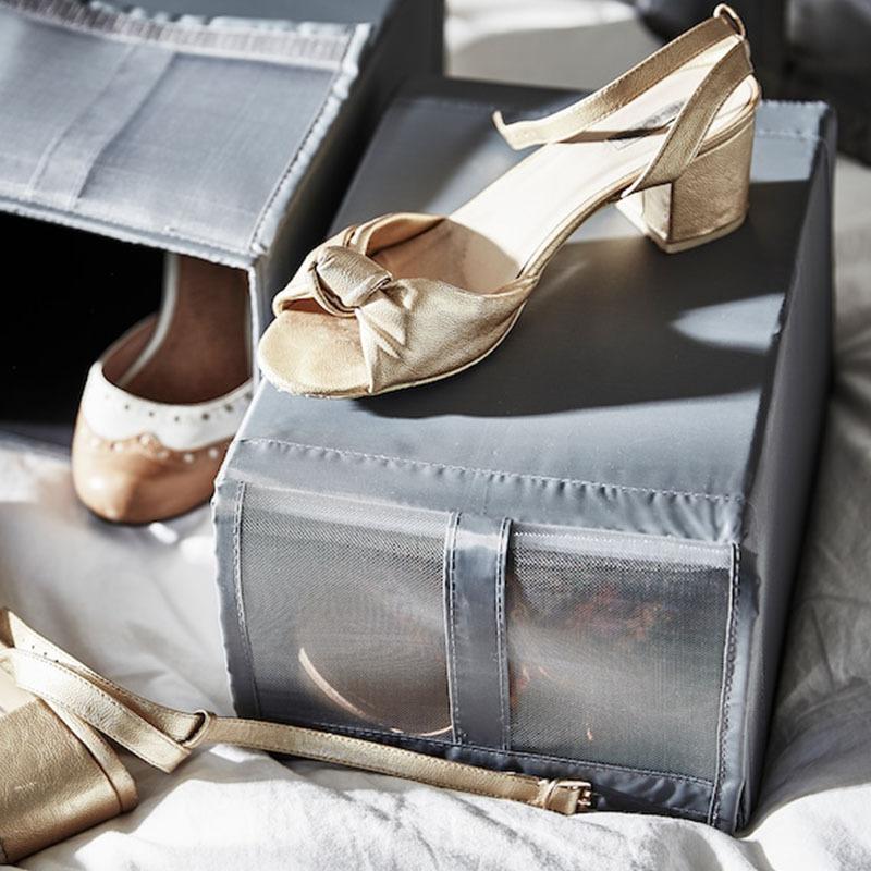 Compre Tecido de armazenamento de sapatos caixa de sapatos transparente armazenamento de tênis de armazenamento gaveta tipo caixa de acabamento Internet celebridade lavável no atacado no Joom.pro
