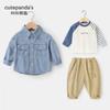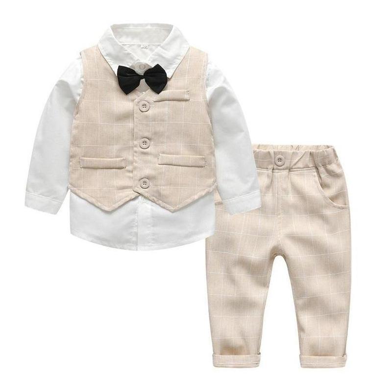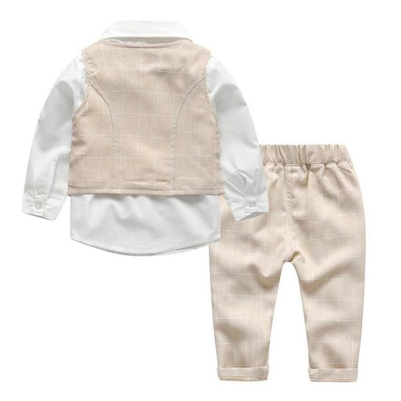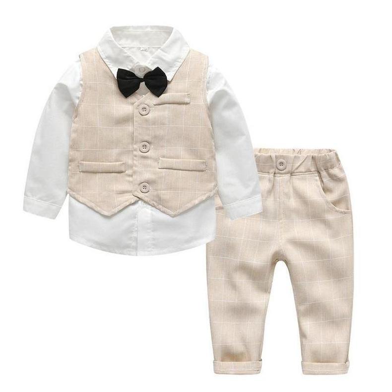 Spot transfronteiriço Primavera Europa e os Estados Unidos baby boy baby gentleman terno colete de algodão de três peças definir uma geração de cabelo