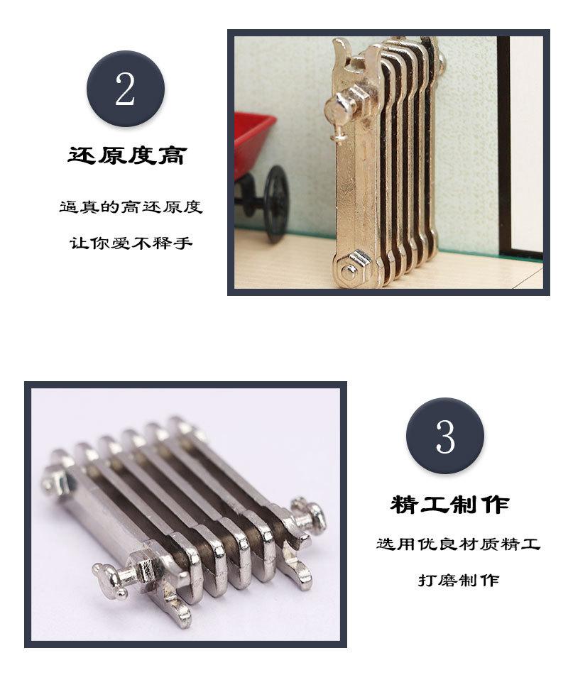Radiador de metal de simulação, adequado para casa de bonecas de 12 pontos