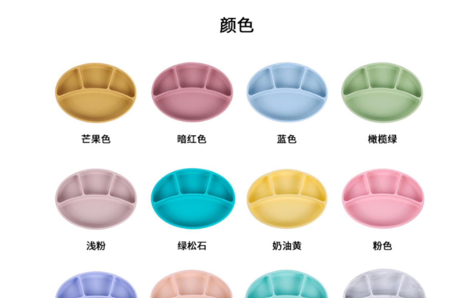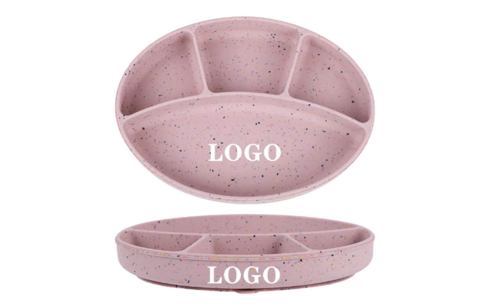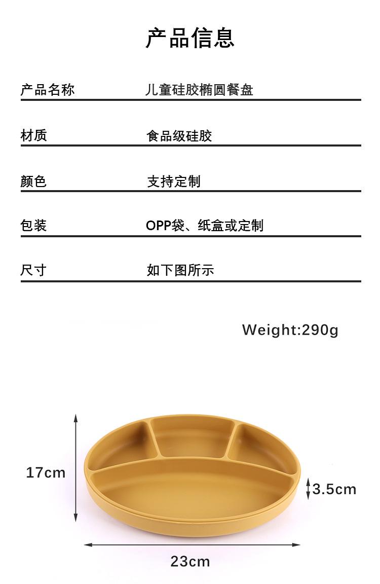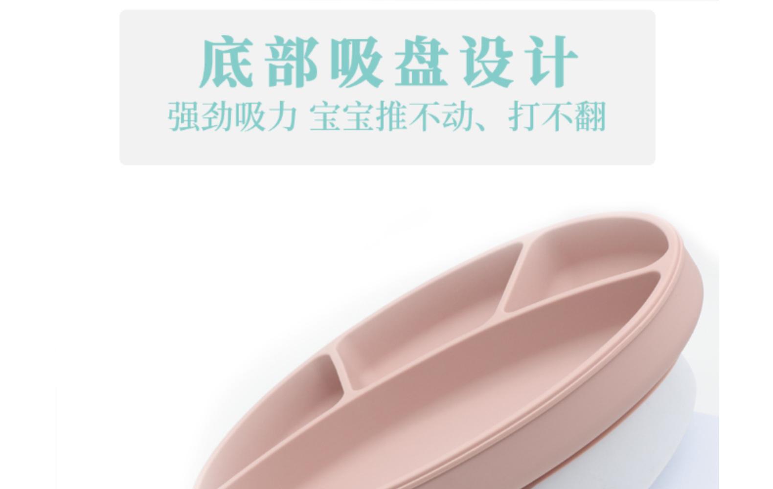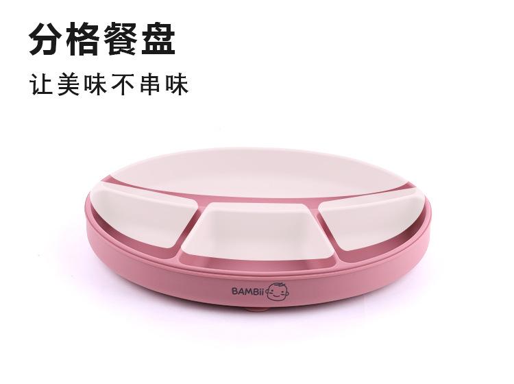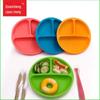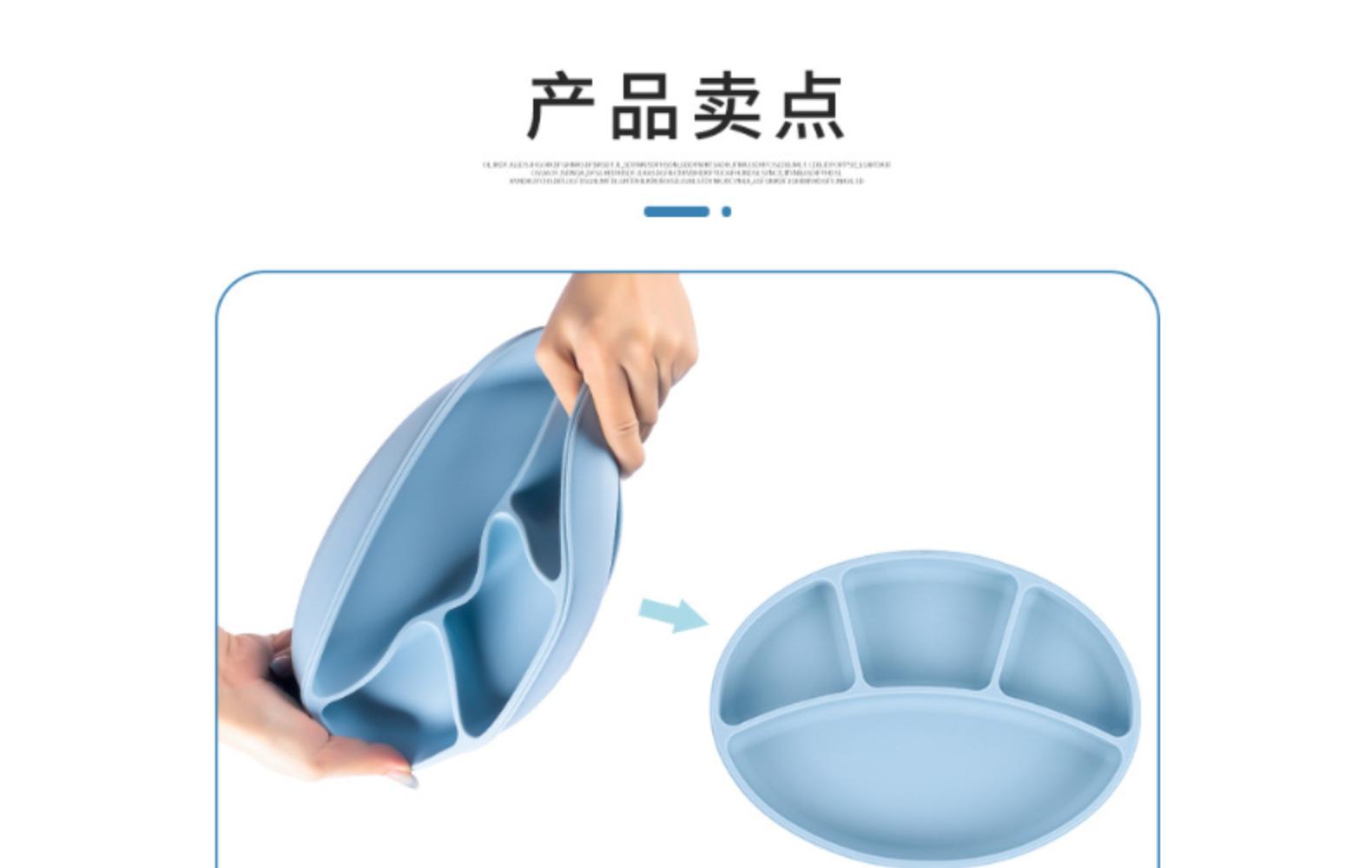 Prato de jantar de silicone infantil com divisão integrada e tampa à prova de poeira, fácil de limpar, silicone de grau alimentício, grande ventosa