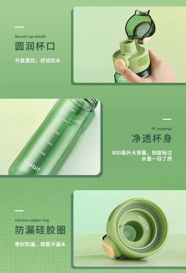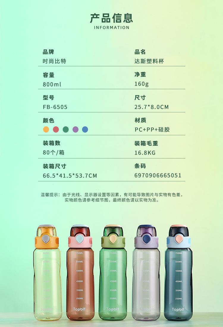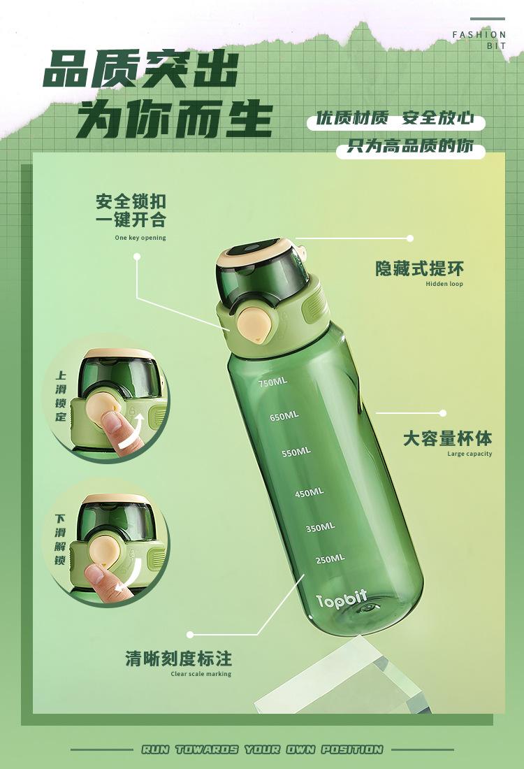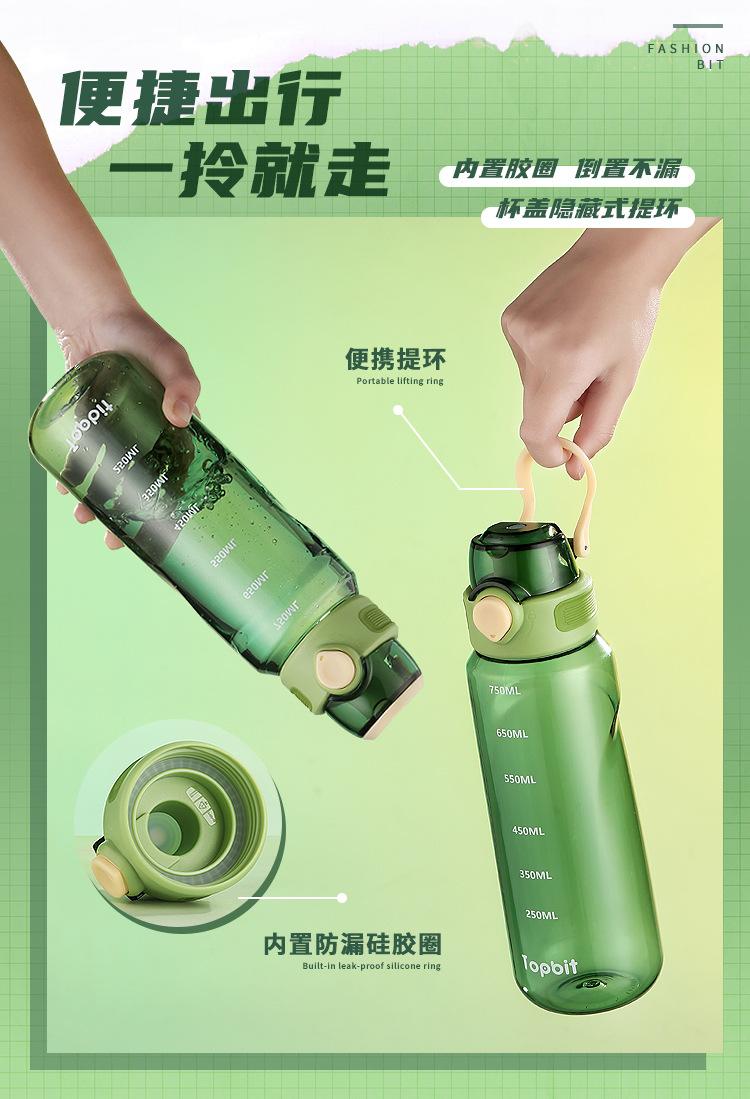 Copo de Água Esportivo ao Ar Livre Bit, Copo Fitness de Grande Capacidade para Beber Diretamente, Copo de Plástico para Homens e Mulheres com Escala, Copo Portátil