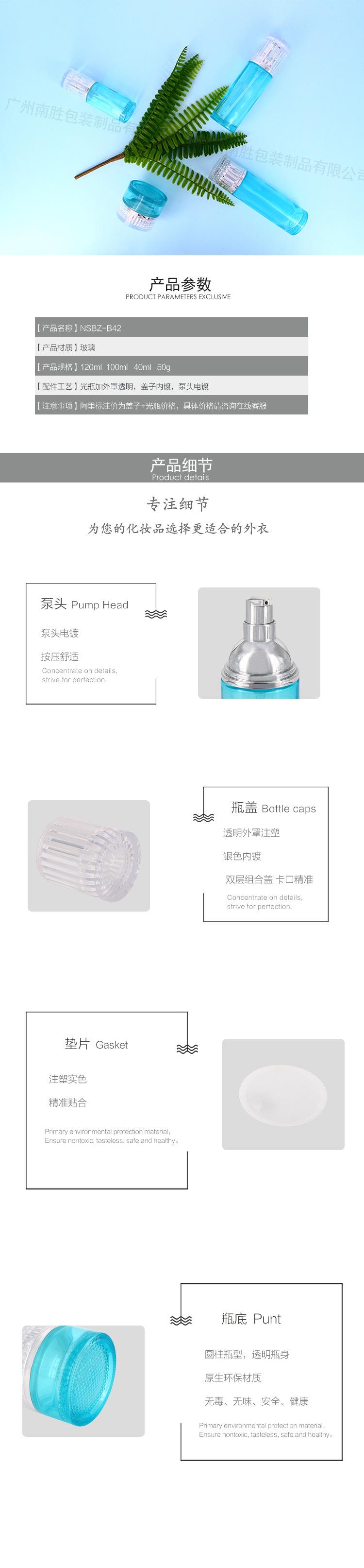 Frasco de vidro para conjunto de cosméticos 120ml 100ml 40ml