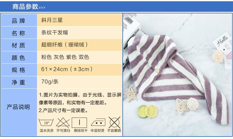 Gray striped hair drying cap, Purple striped hair drying cap, Two-color striped hair drying cap, Pink striped hair drying cap
