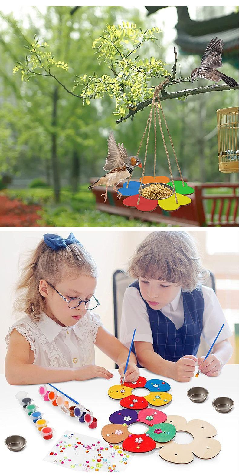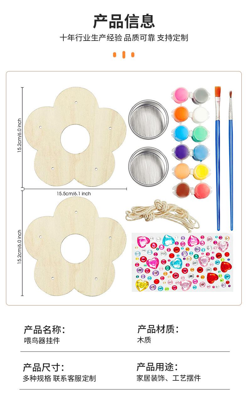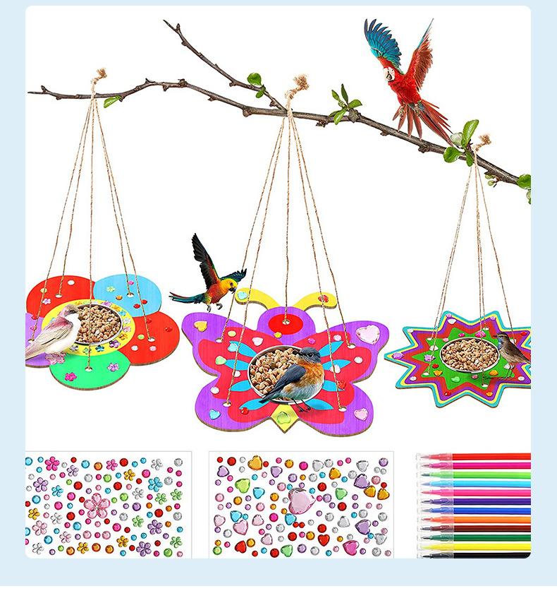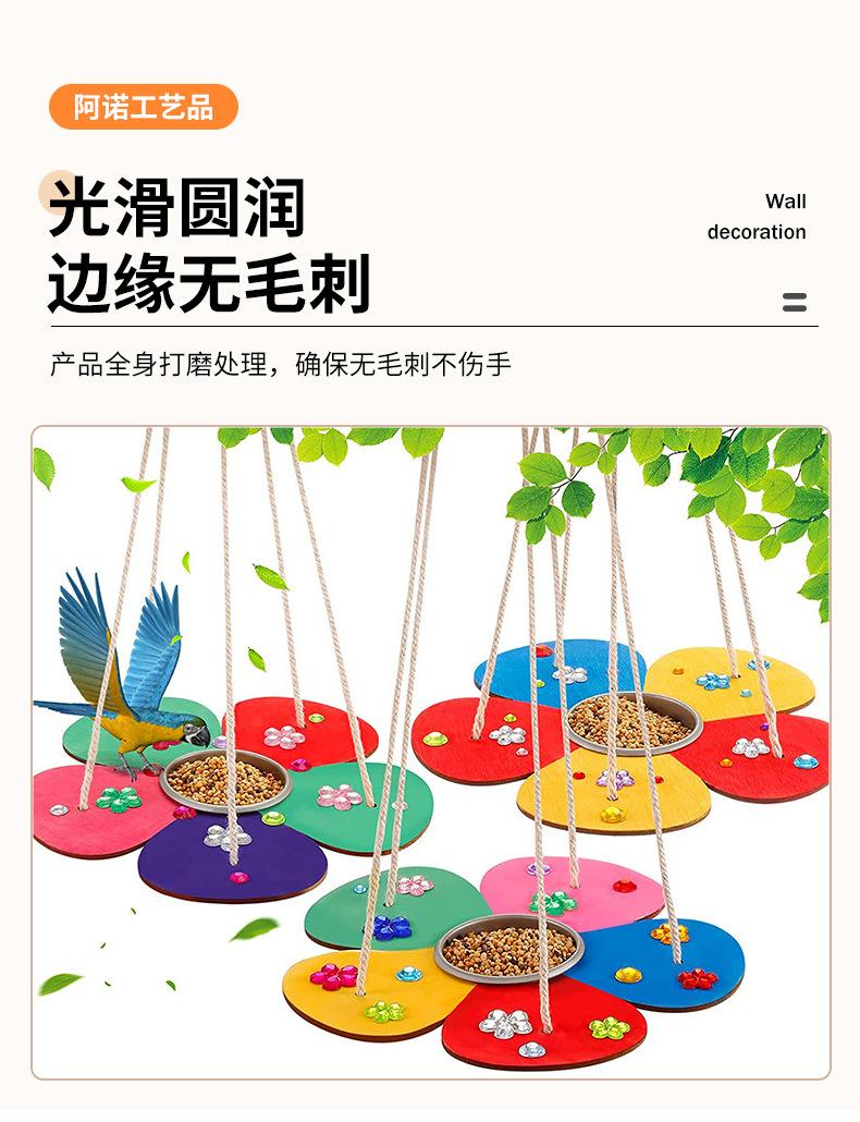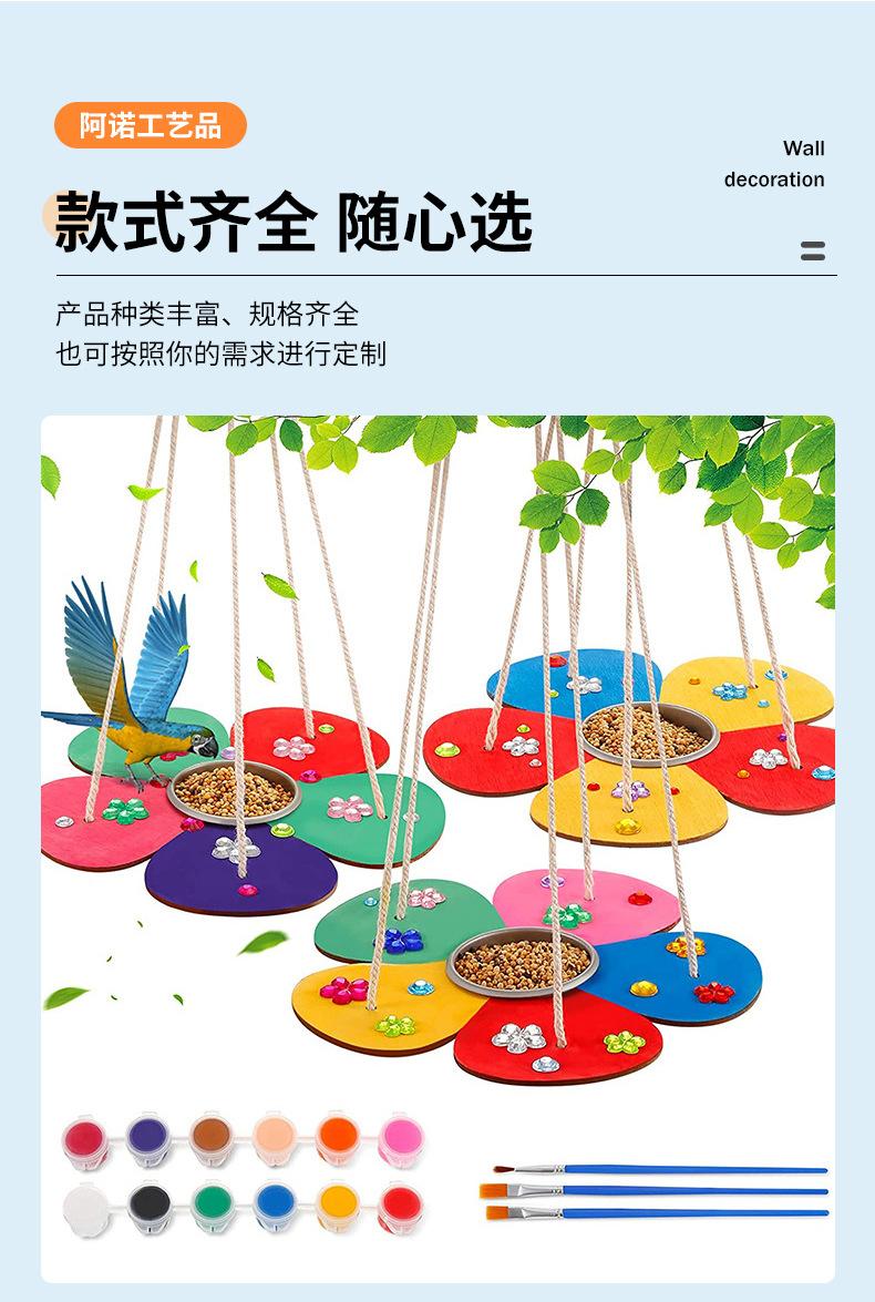 Alimentador de pássaros de madeira transfronteiriço, decorações, pintura colorida, produção infantil, artesanato de madeira, adereços de alimentador de pássaros em estoque