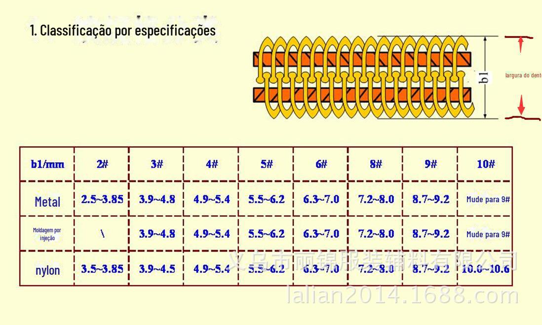 De acordo com as especificações, os zíperes convencionais 5#, 7#, 8# e 10# são mais comumente usados.