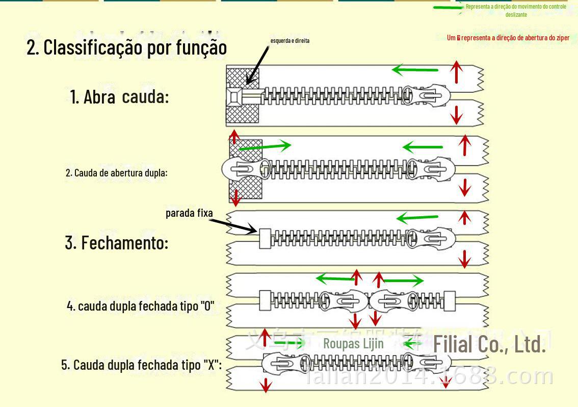 3. Estilo de zíper (zíper com código, zíper aberto, zíper fechado, etc.)