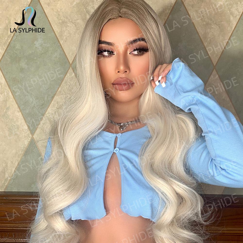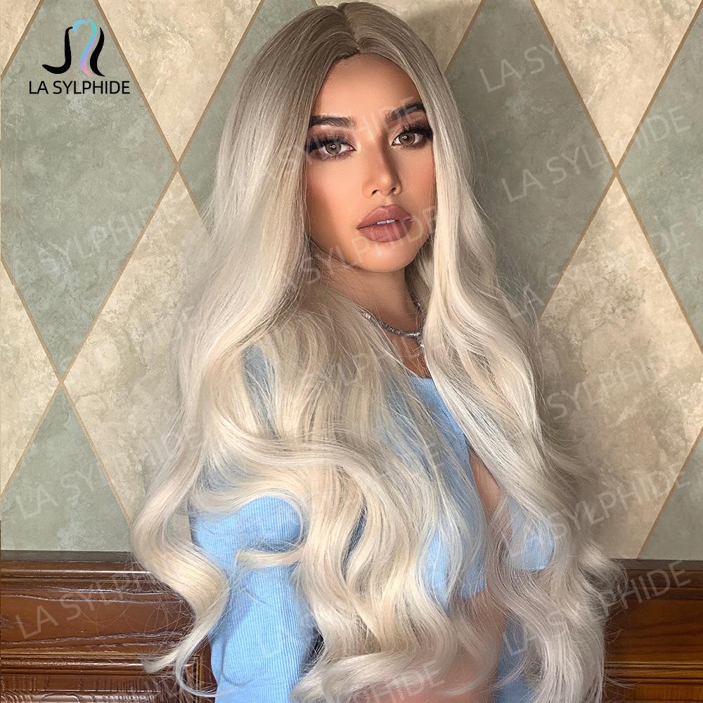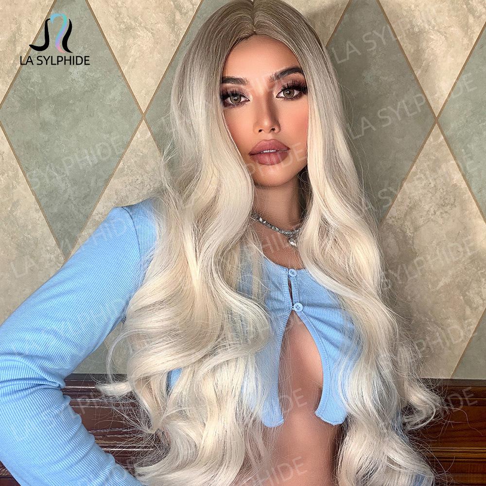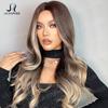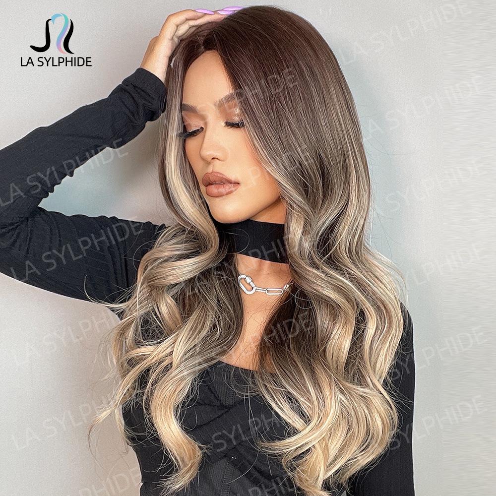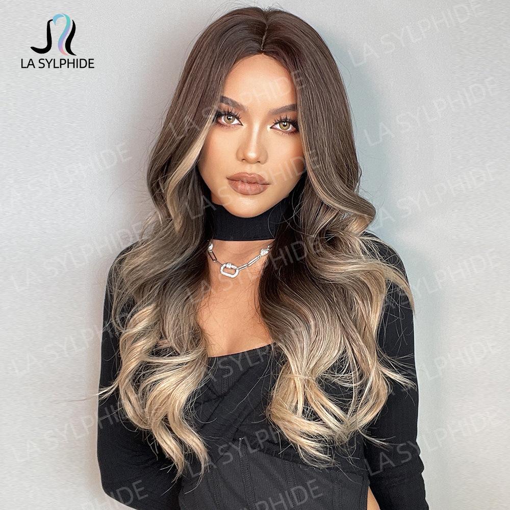 lc458-1 marrom escuro gradiente ouro branco 26 polegadas:lc273-1 cabelo loiro longo e encaracolado com repartição média de 26 polegadas:
