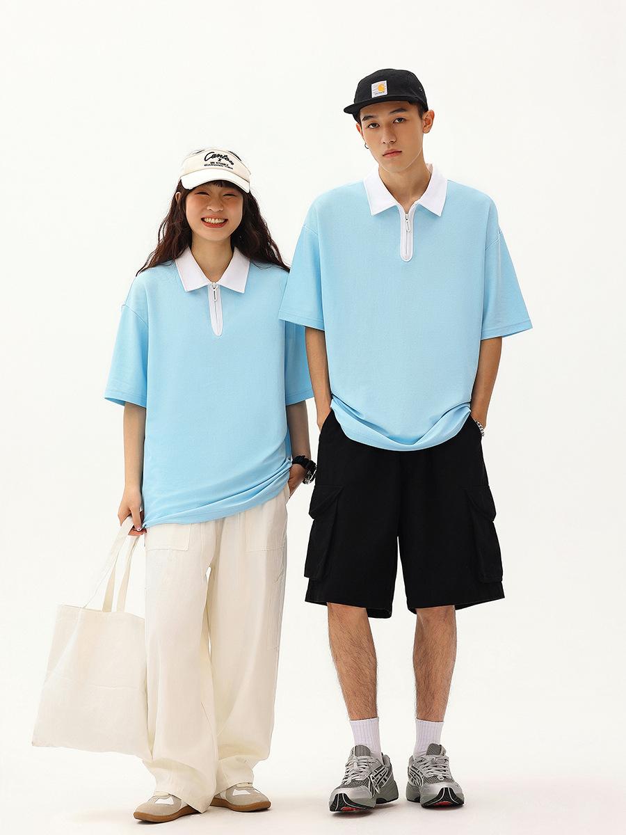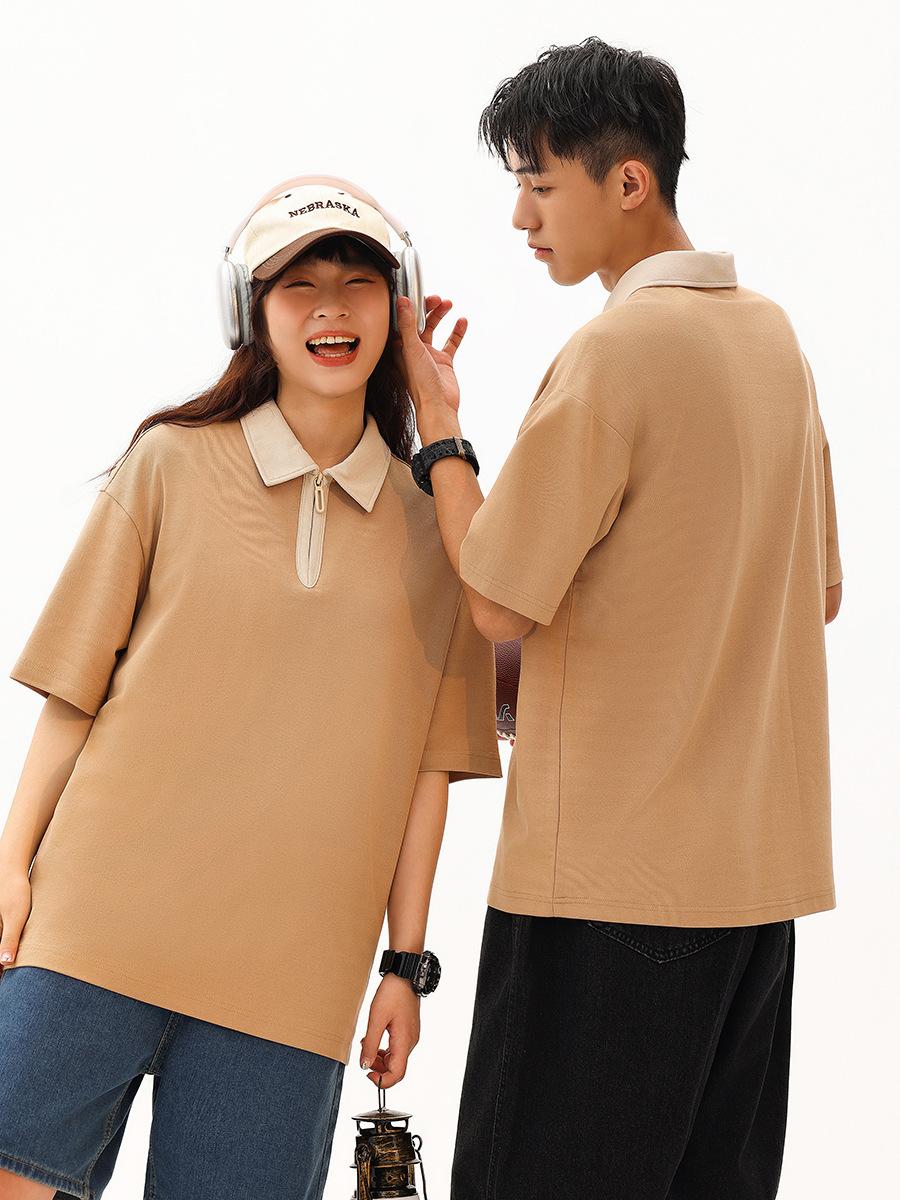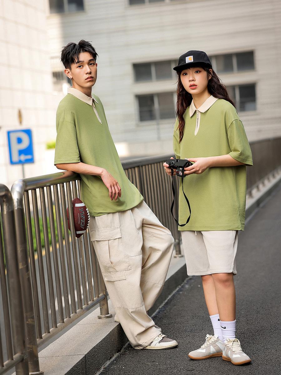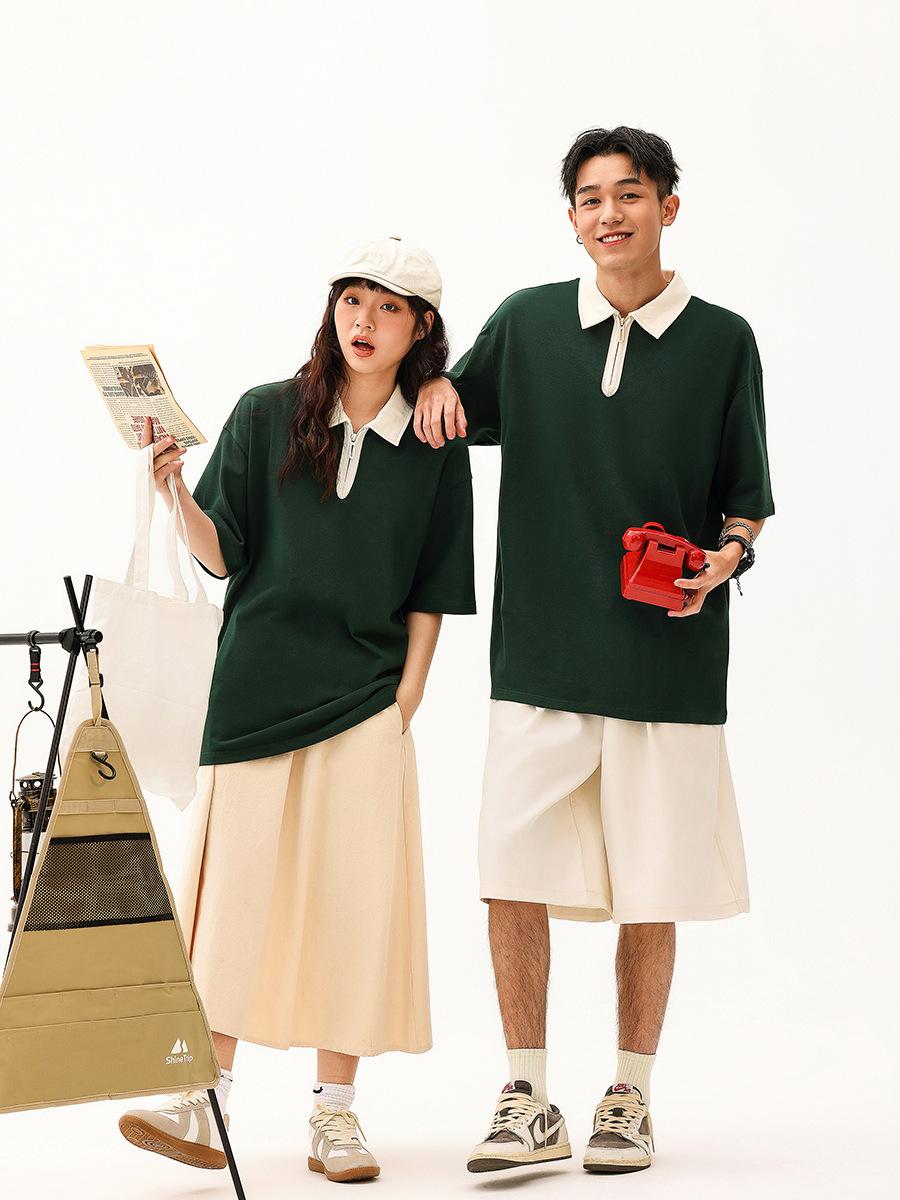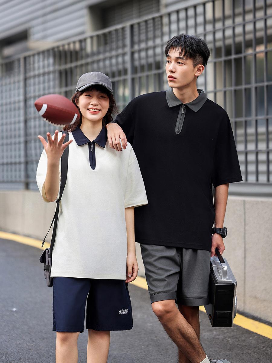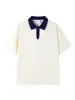 Contraste Cor Academia Estilo 2024 Nova Camiseta de manga curta POLO Casual Loose Design Top Verão Camisa de Casal