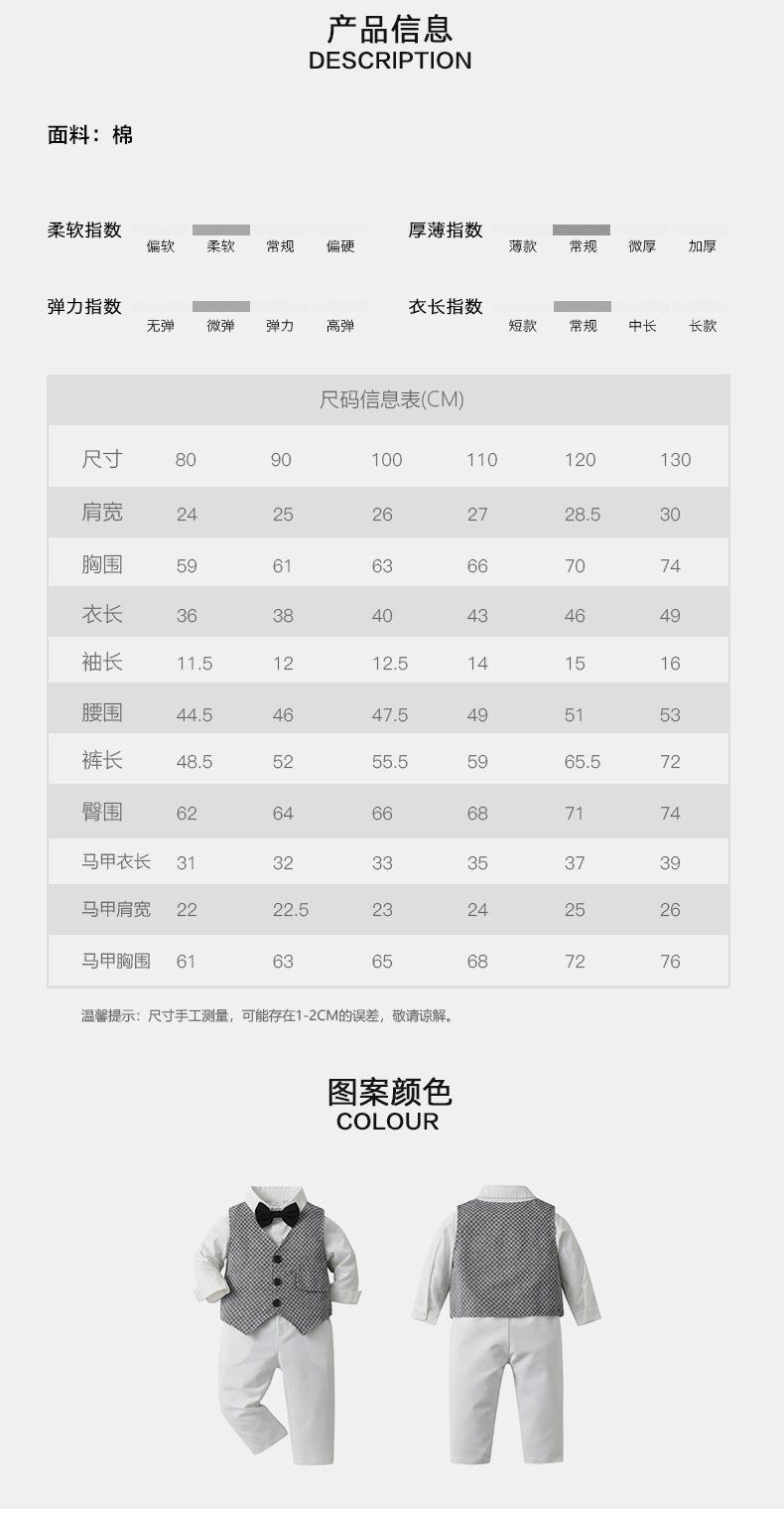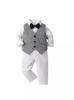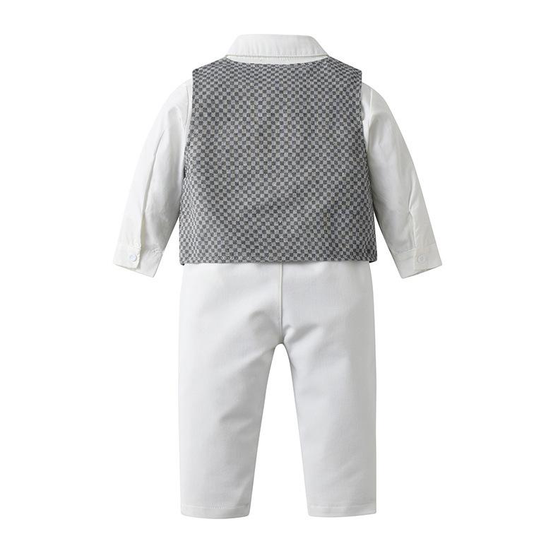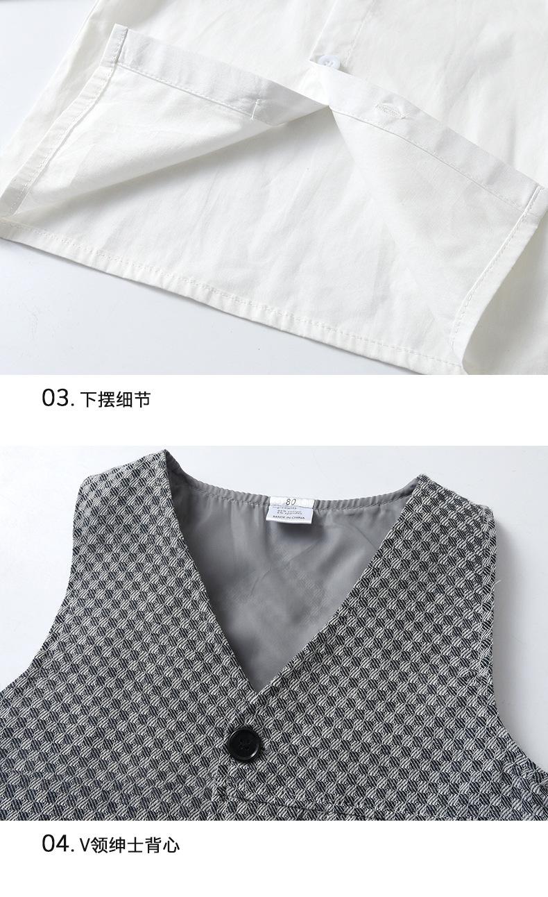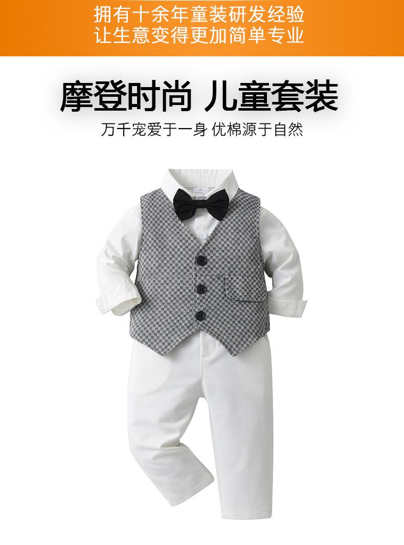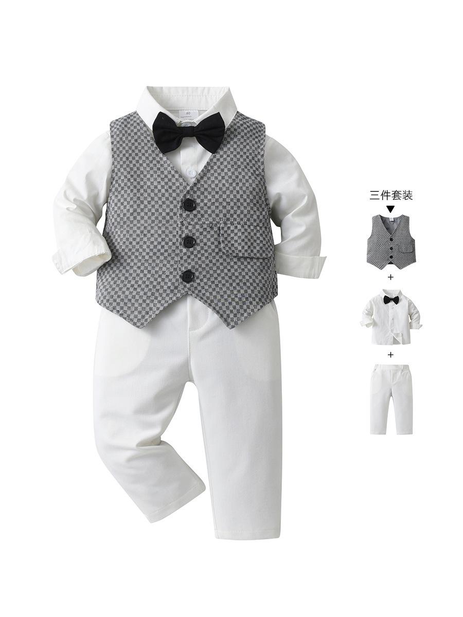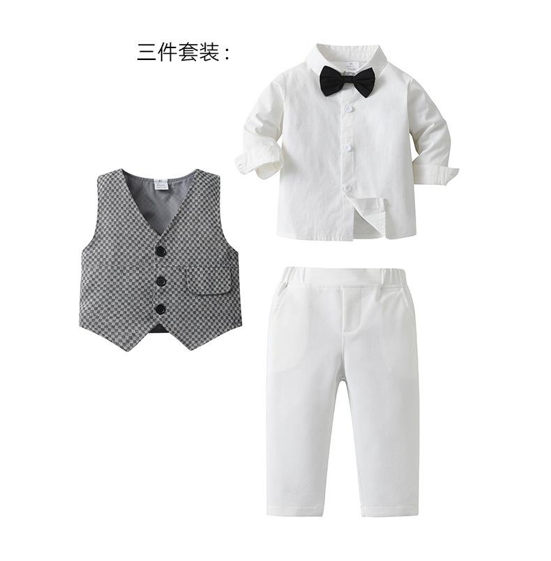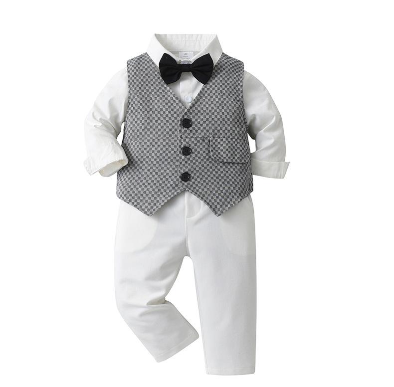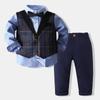 Comércio Exterior Roupas Infantis para Meninos Primavera e Outono Roupas Infantis Colete xadrez britânico Conjunto de três peças Terno de cavalheiros infantis