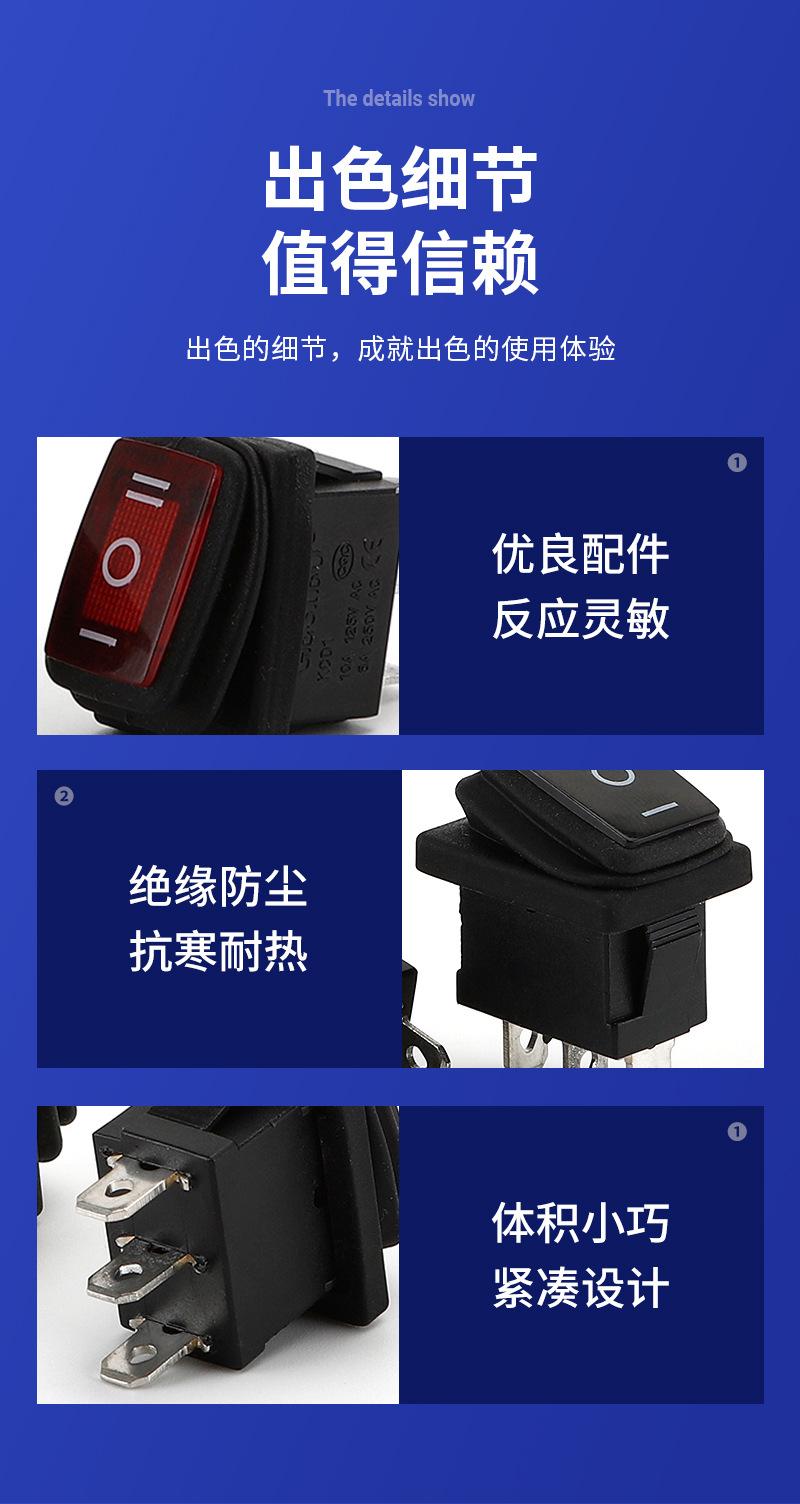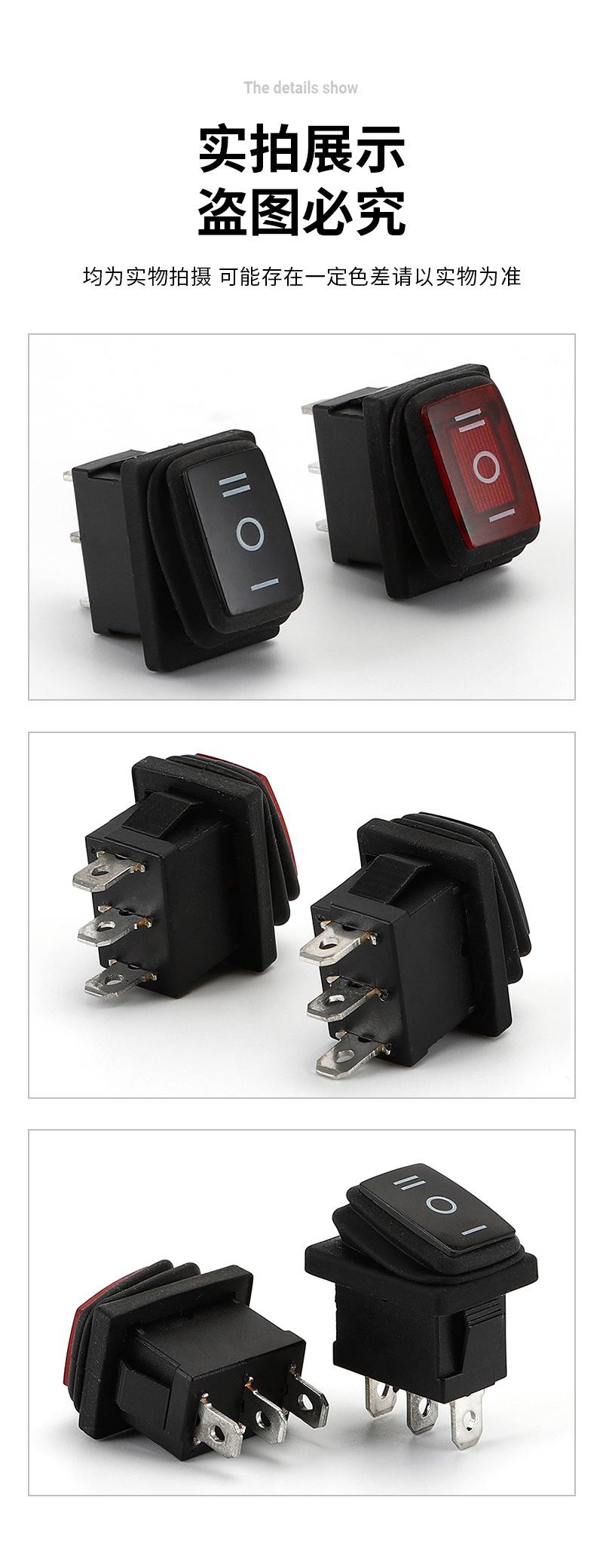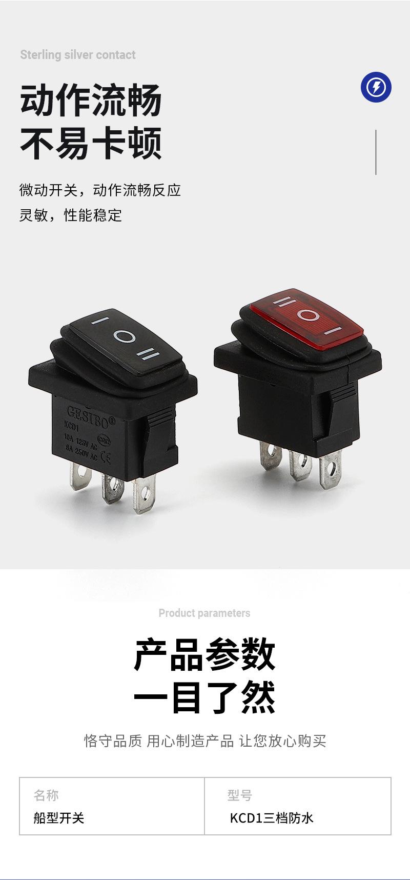 KCD1 pequeno barco interruptor de energia balancim de três pernas três velocidades impermeável botão barco interruptor