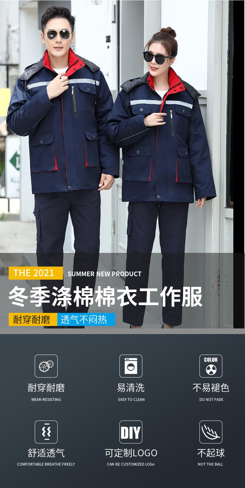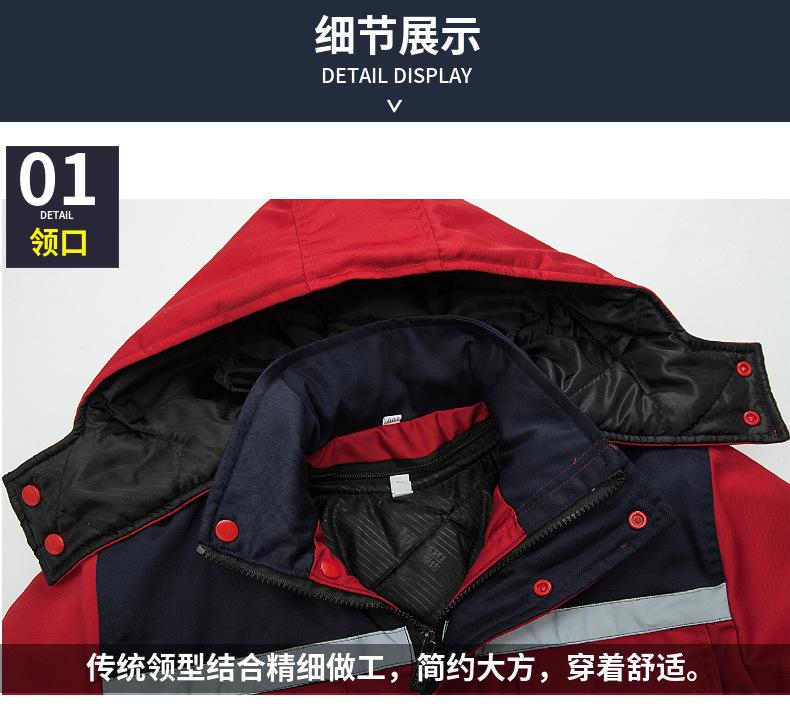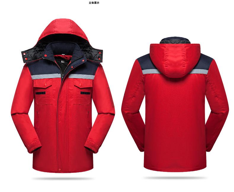 Tira refletiva de inverno proteção do trabalho roupas de trabalho casaco acolchoado de algodão engrossado à prova de vento quente removível forro de algodão com capuz