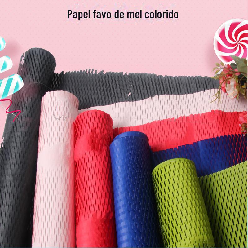 Papel de embrulho de favo de mel multicolorido, atacado, almofada, papel de enchimento, feito à mão, papel de favo de mel, malha de presente, papel kraft