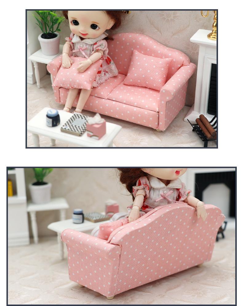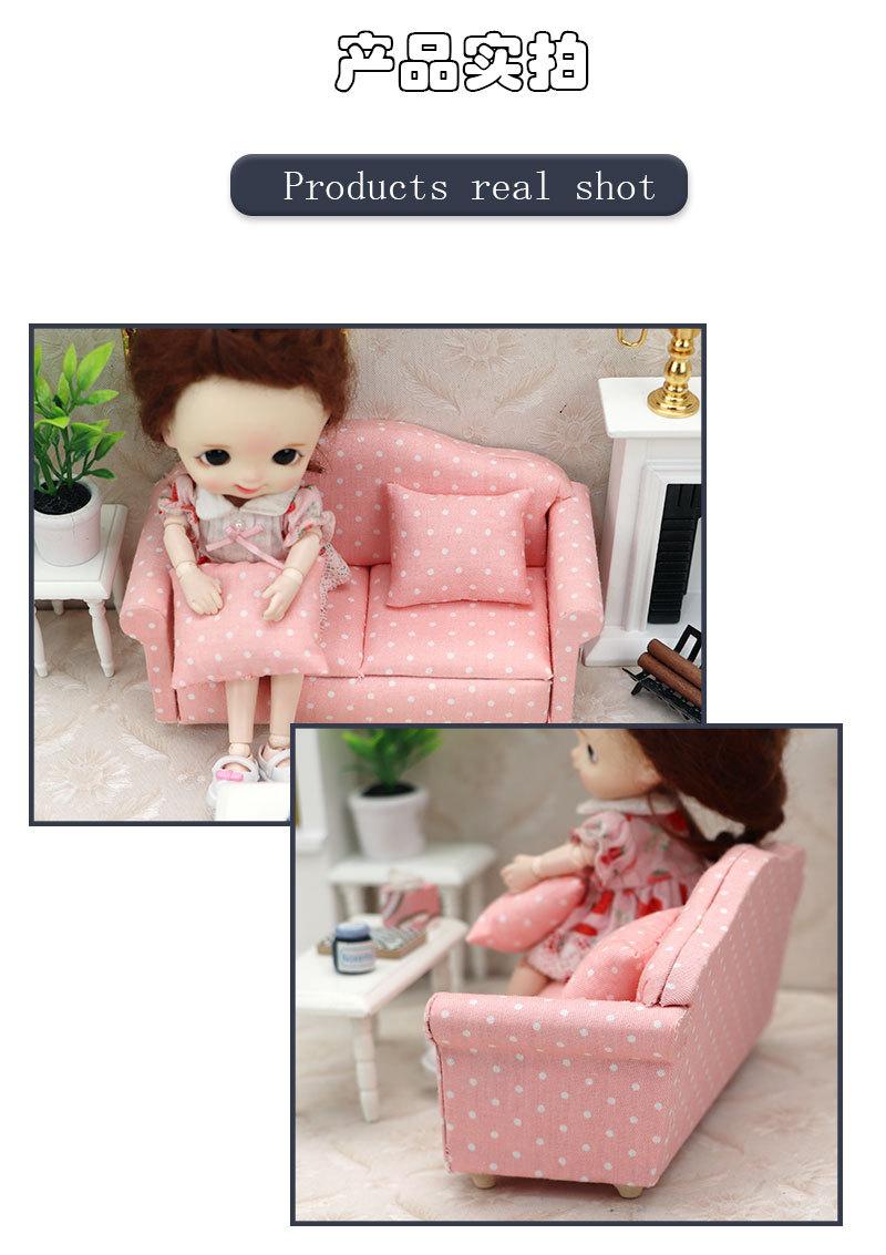 Tamanho: comprimento do sofá duplo 13,3 cm largura 6,3 cm altura 6,6 cm; comprimento da almofada 4,5cm largura 4cm