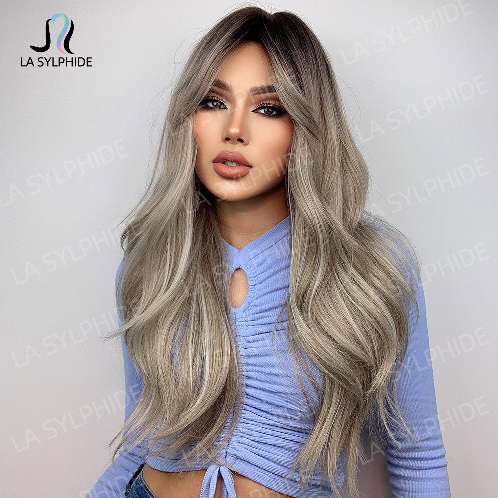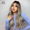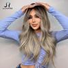 Tendência europeia e americana Peruca mulheres Ouro cinza Fibra química do cabelo Peruca longa cacheada Cabelo completo capa cabeça Peruca nova Amazon