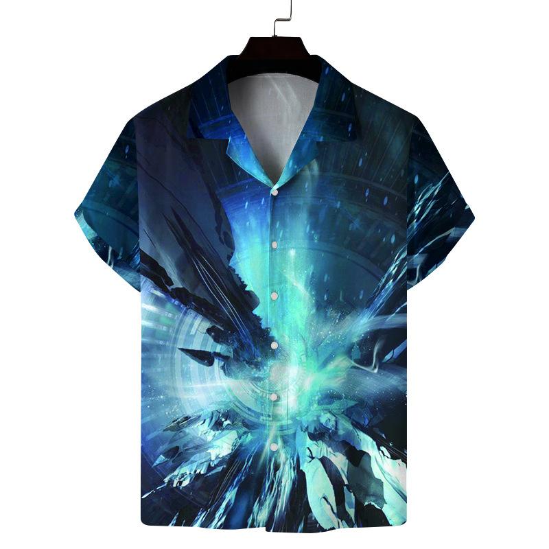 2025 Exportação Primavera e Verão Nova Camisa Masculina Casual Fashion Havaiana com Lapela Fina de Manga Curta para Homens