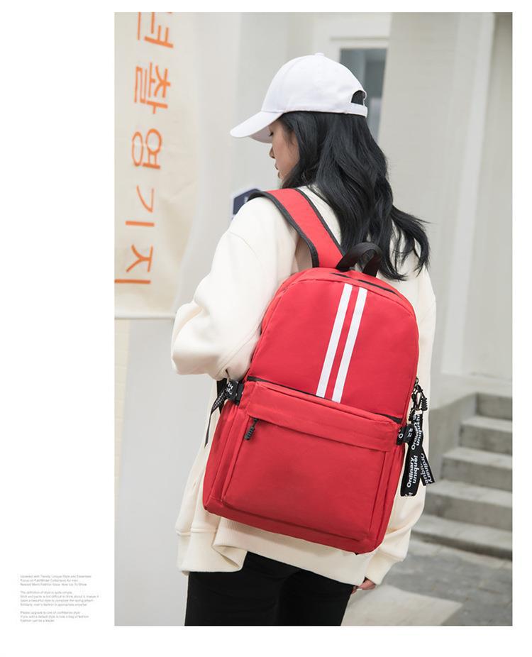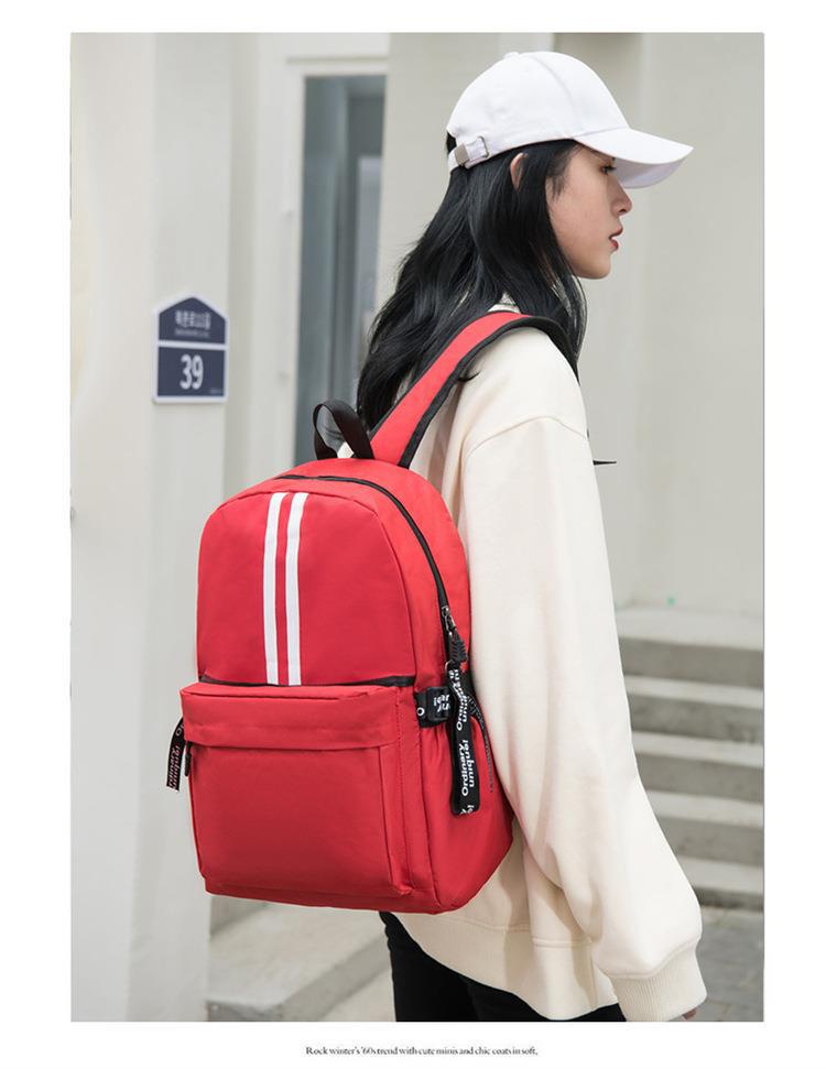 Nova mochila casual mulheres popular cor sólida listrado mochila de computador de viagem masculino estudante do ensino médio bolsa escolar imprimível Logo
