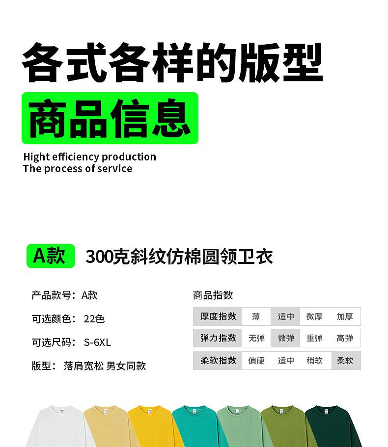 Type a twill round neck sweatshirt, Type b twill hooded sweatshirt, Type c tiger skin round neck sweatshirt, D...